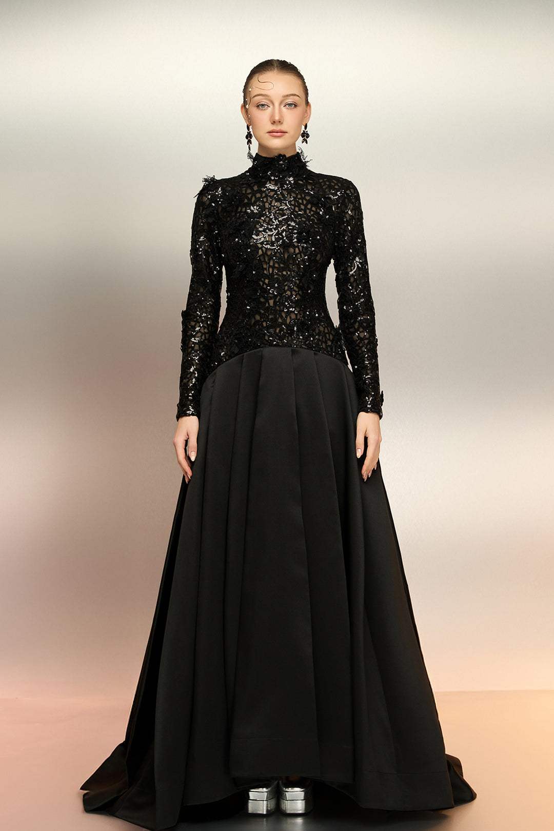 Sheer Sequin Lace Taffeta Dress