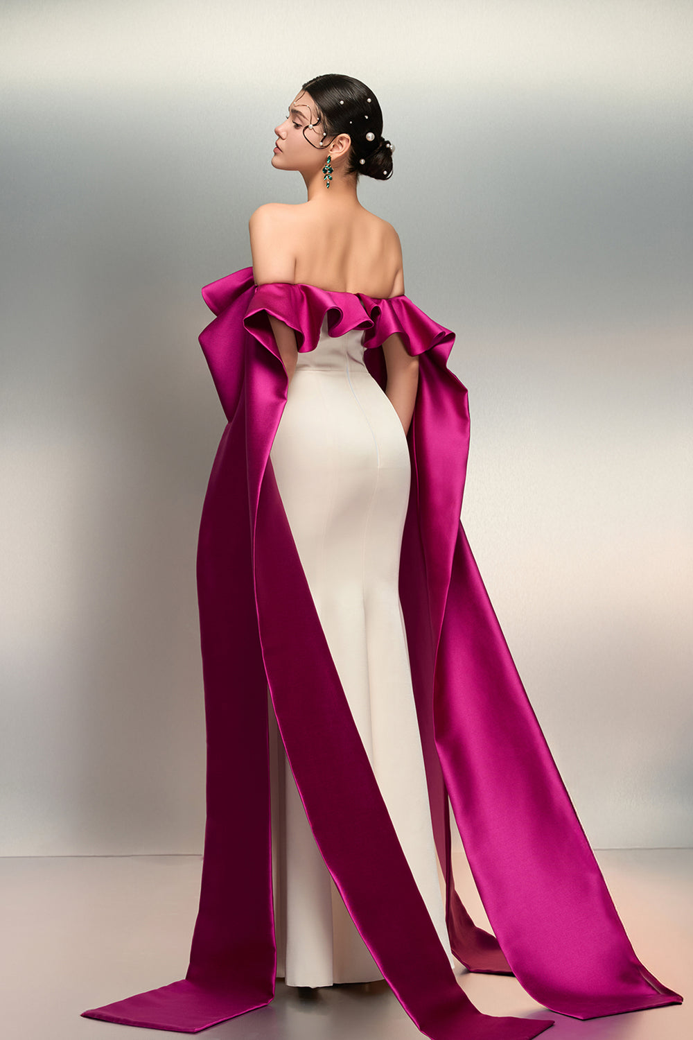 Mermaid with Cape and Off-The-Shoulder Neckline