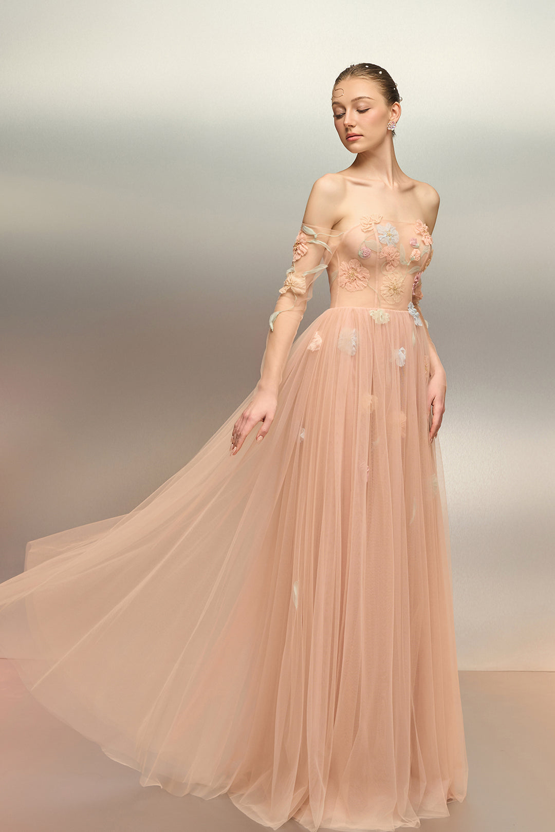 Off-Shoulder Mermaid Dress with Hand-Embellished Floral Motif