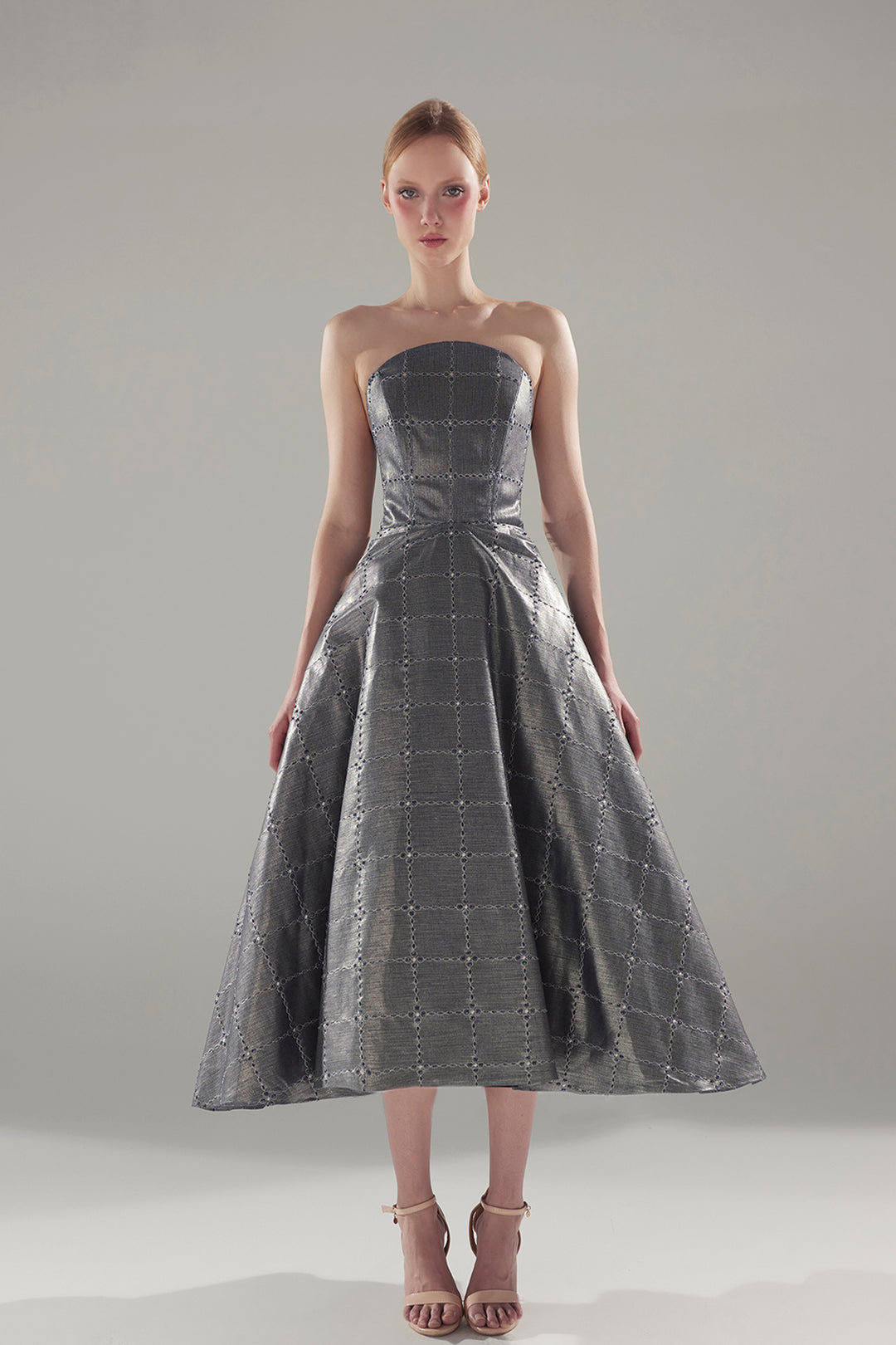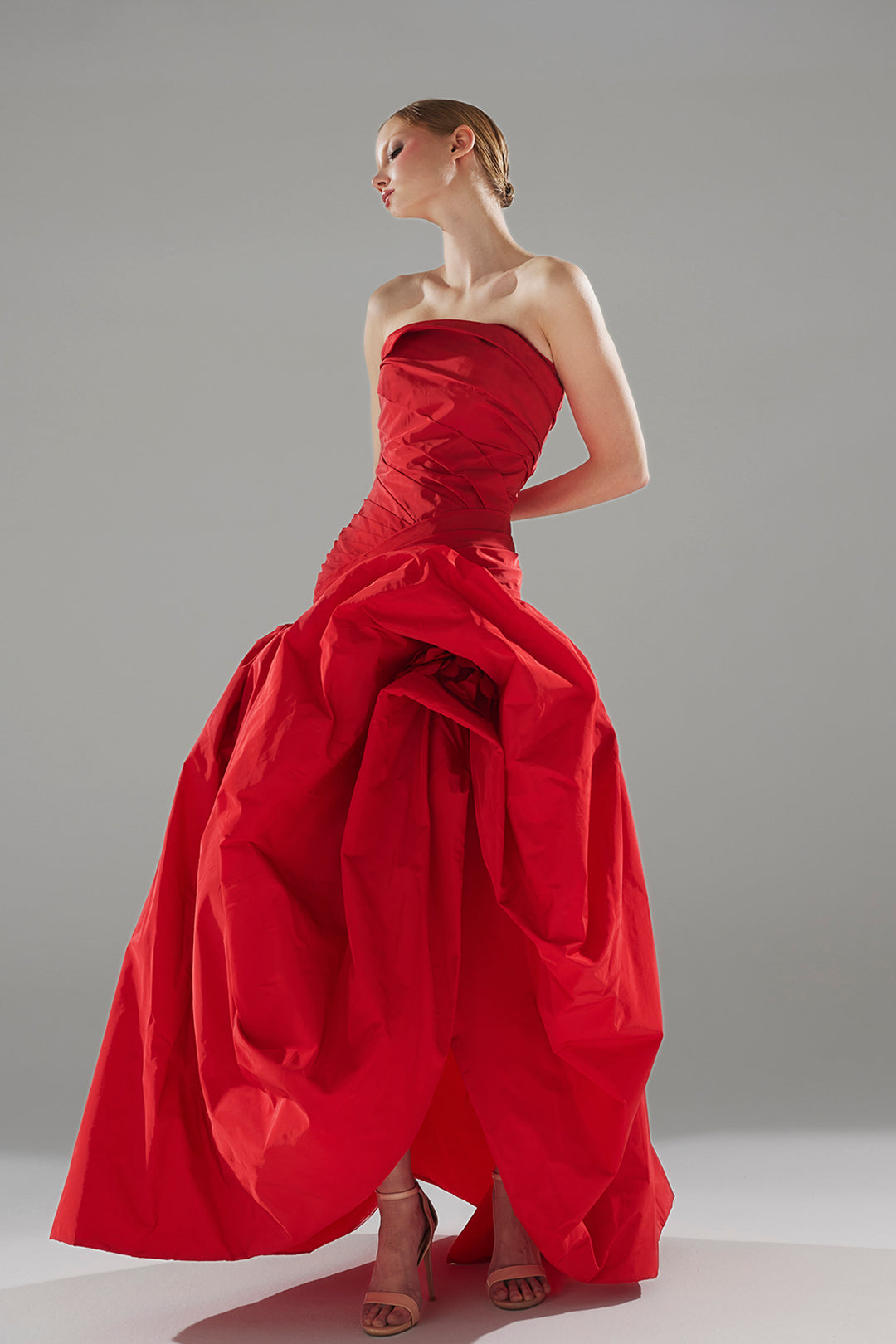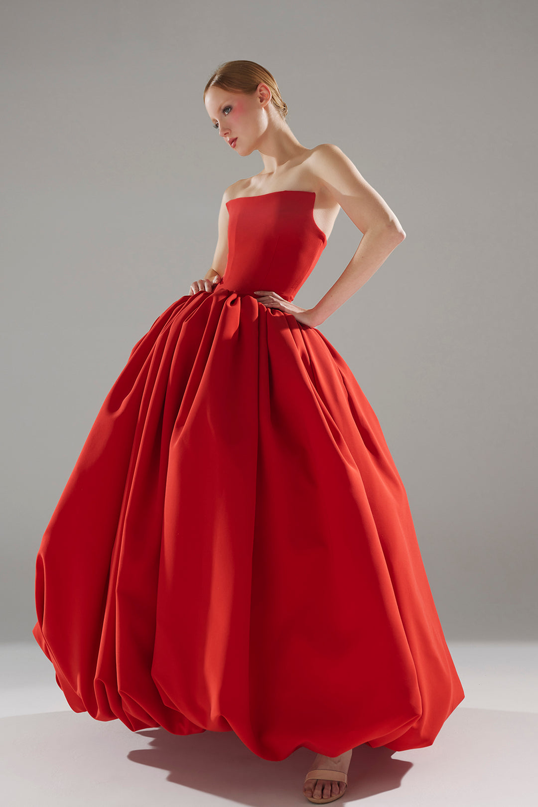 Strapless Bodice Dress with Voluminous Organza Skirt