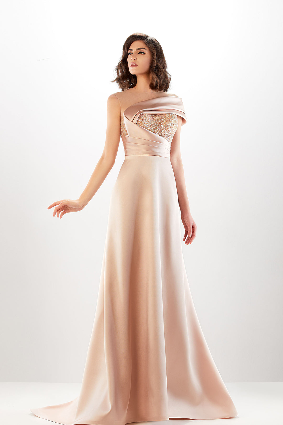 Mikado Floor-Length Dress with Draping and Sparkling Corset
