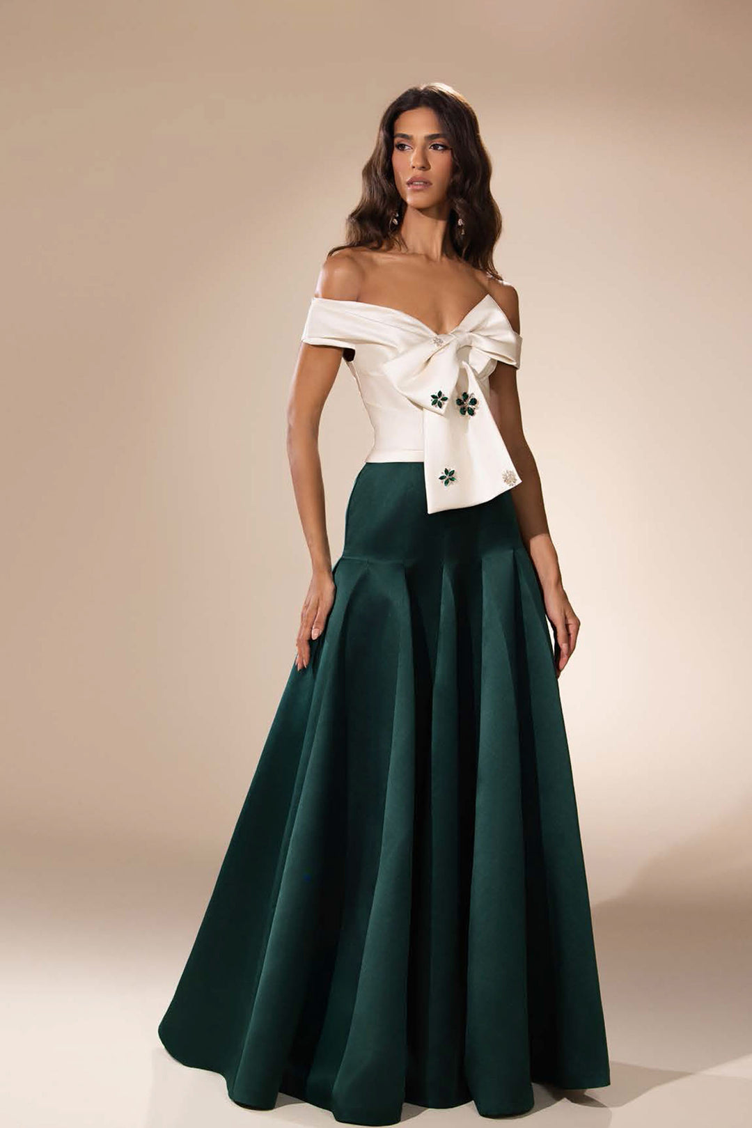 Off-The-Shoulder Column Dress with Beaded Detail