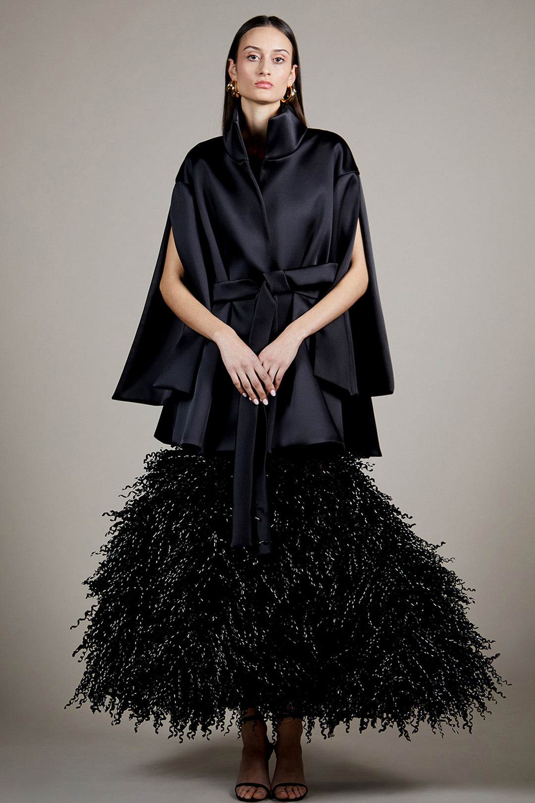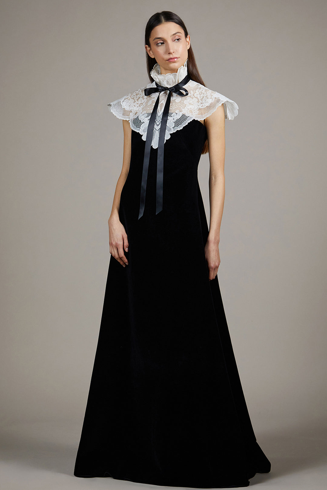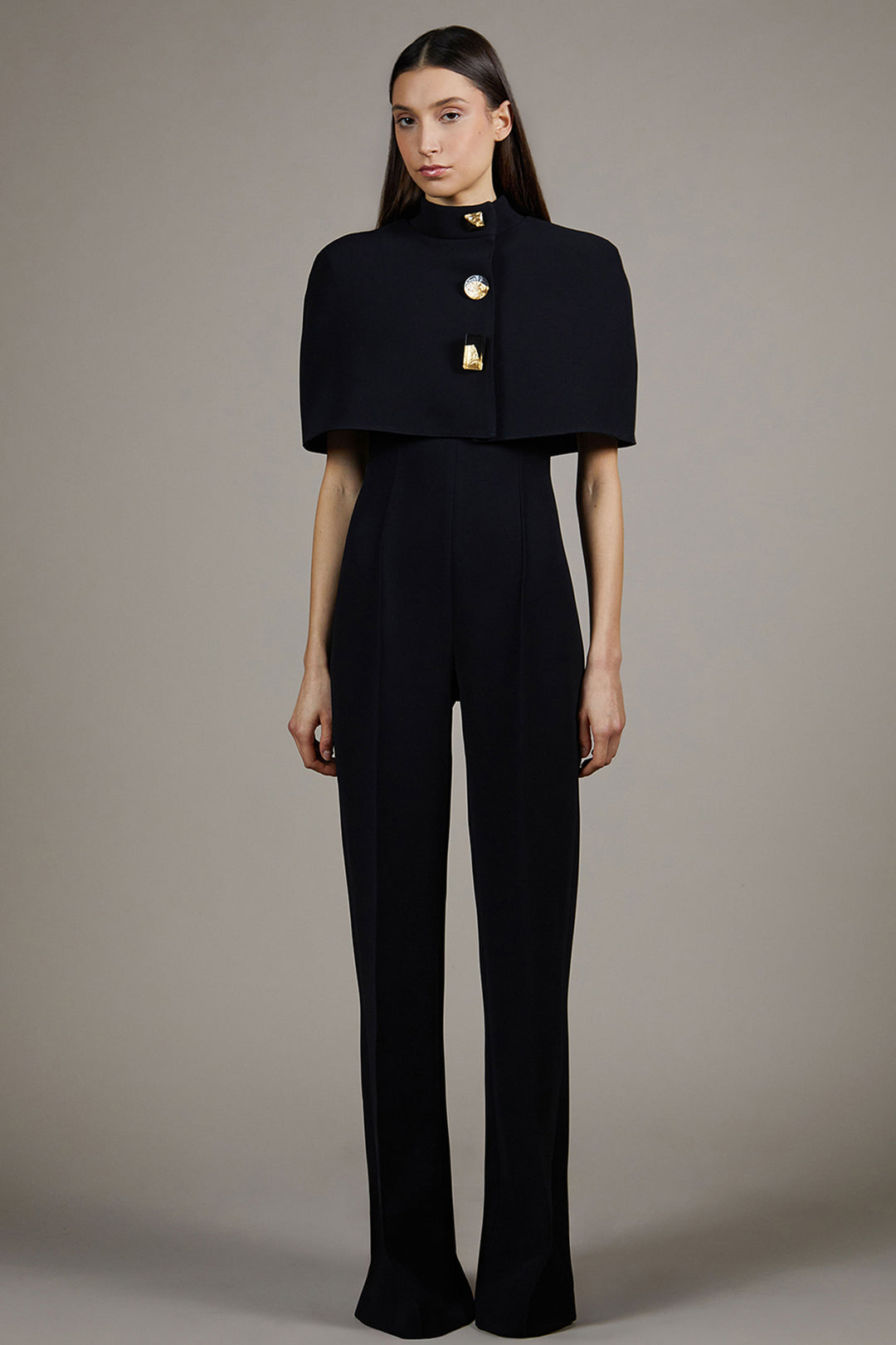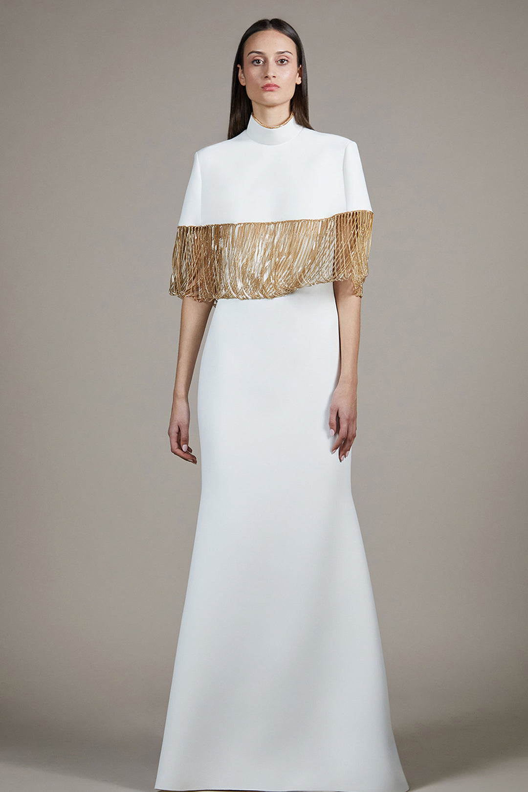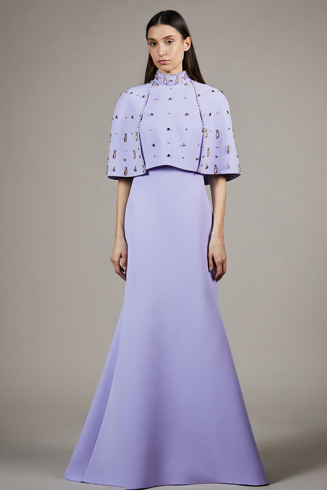 Cape Overlay Full-Length Ensemble with Stand Collar