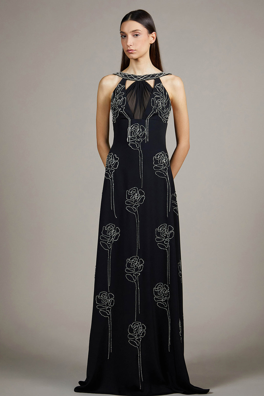 Crystal-Embellished Cutout Long Dress