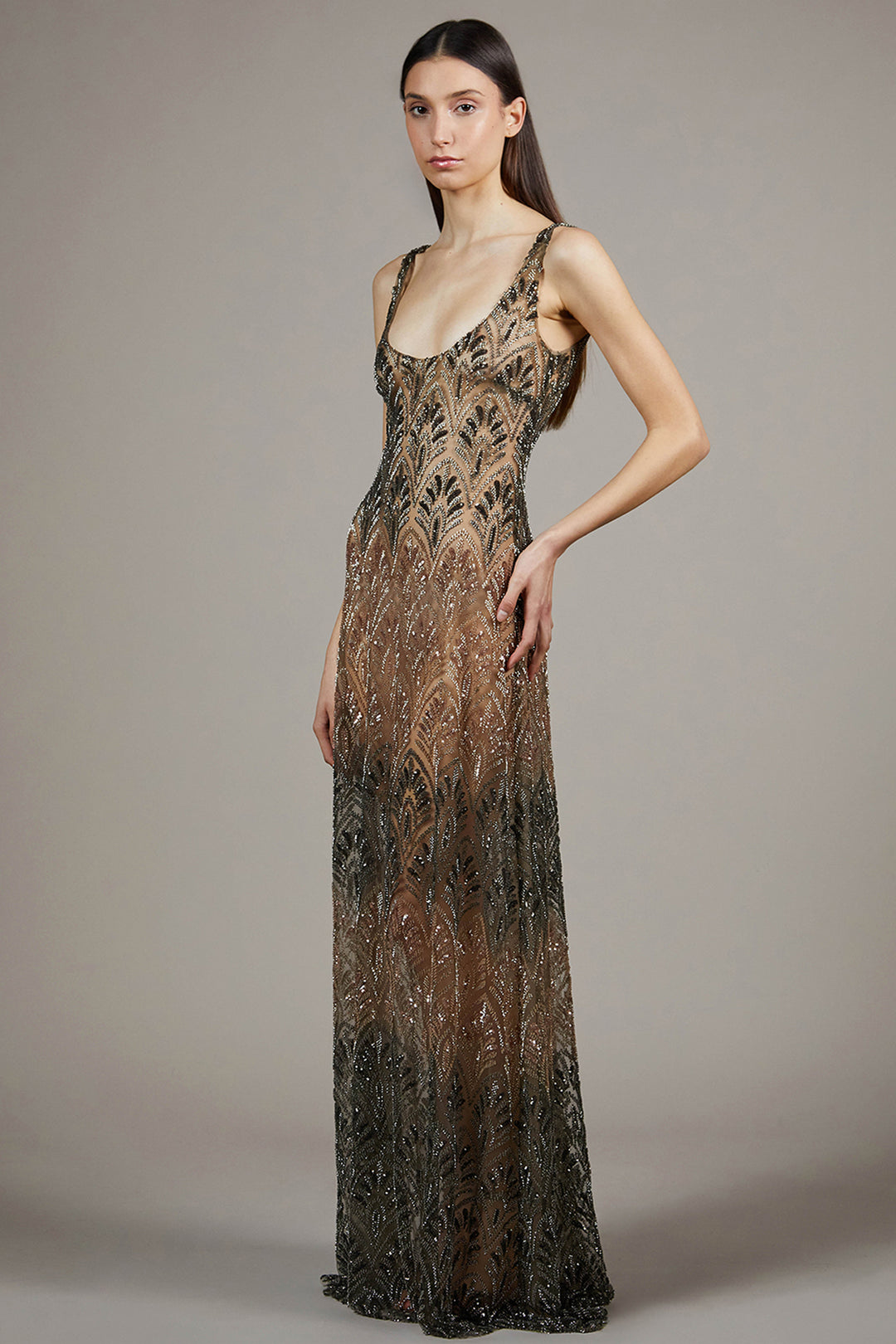 Full-Length Column Dress with Sparkling Sequin