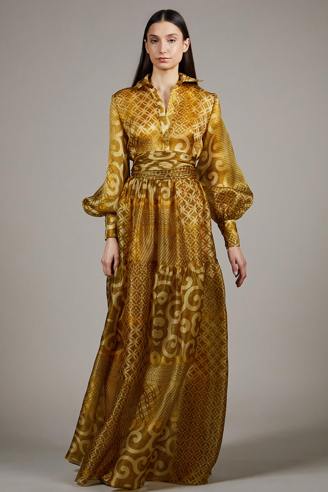 Tiered Bishop-Sleeve Shirt Dress