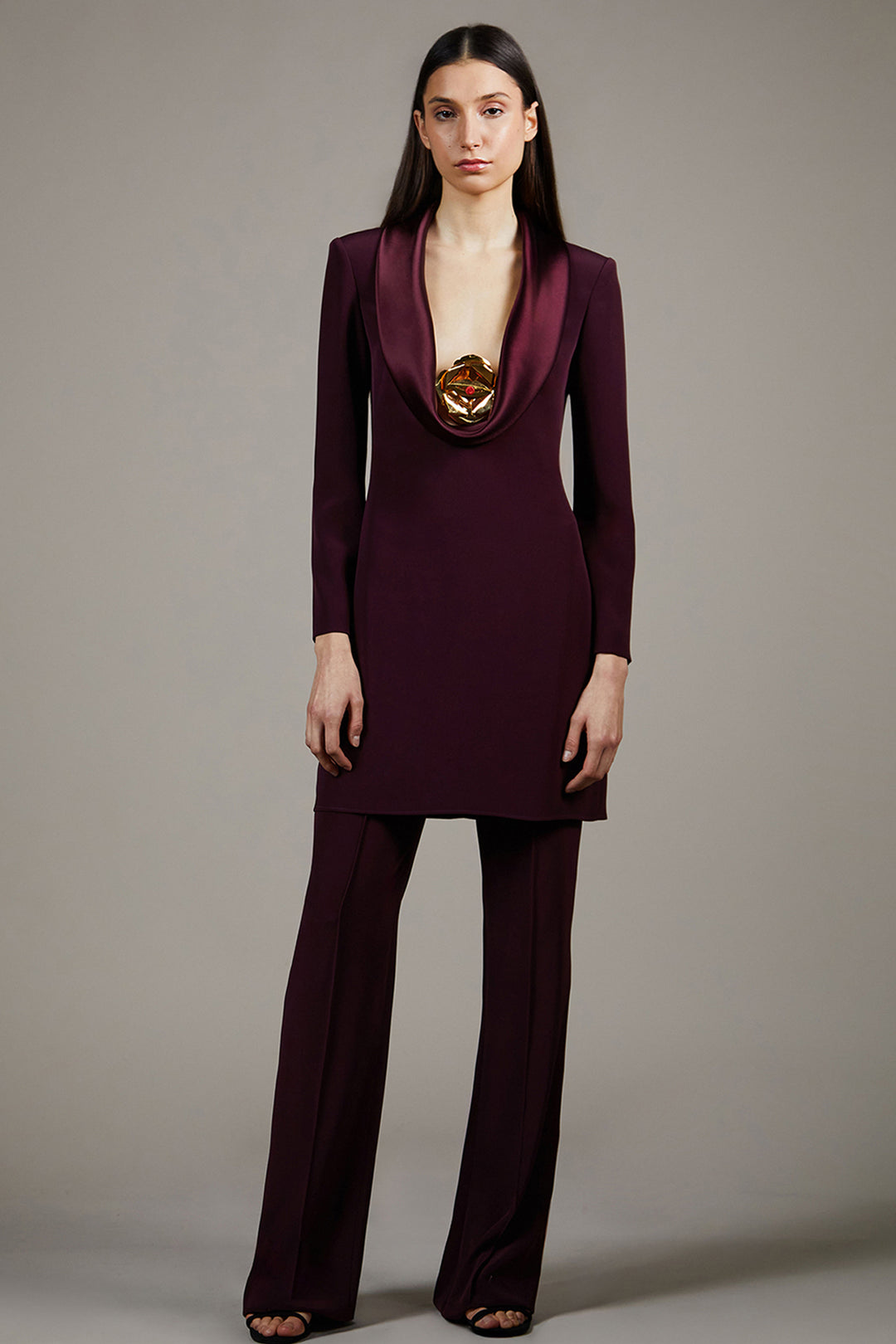 Architectural Draped Tunic And Tailored Flare Set