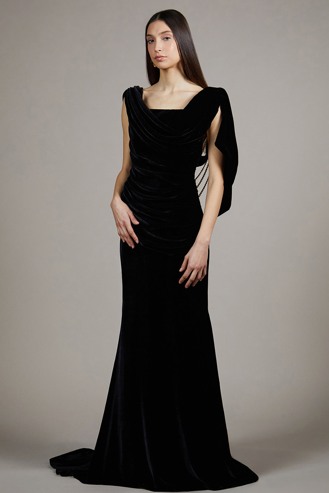 Draped Asymmetrical Velvet Mermaid Dress
