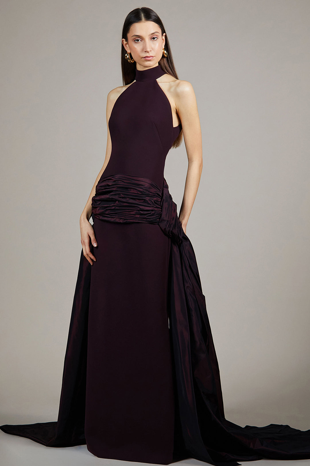 Halter Column Dress with Taffeta Side Train