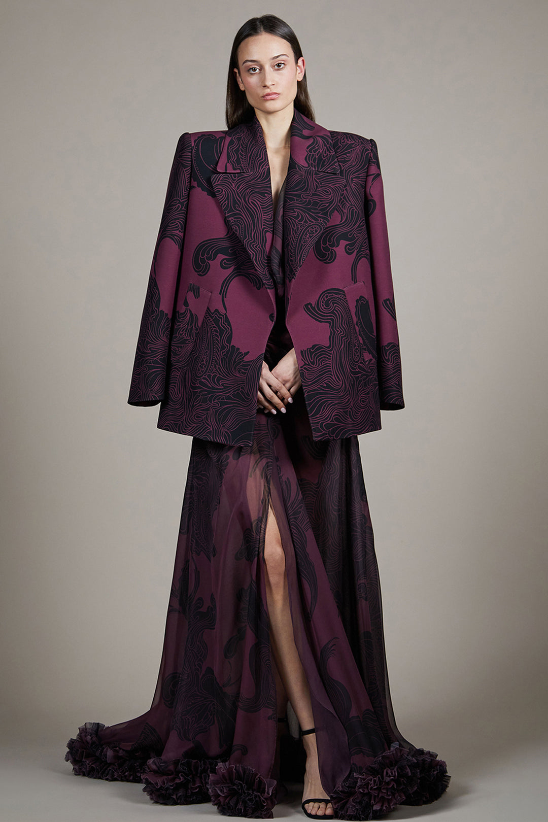Tailored Jacket with Slit Maxi Ensemble
