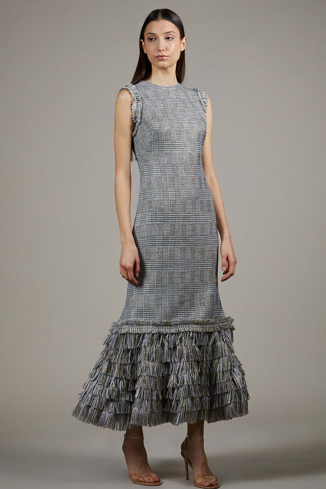 Tiered Fringed Plaid Midi Dress