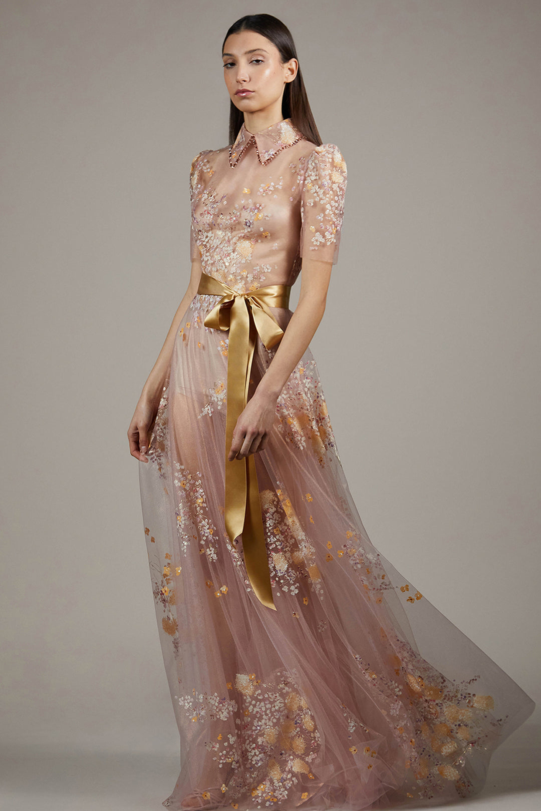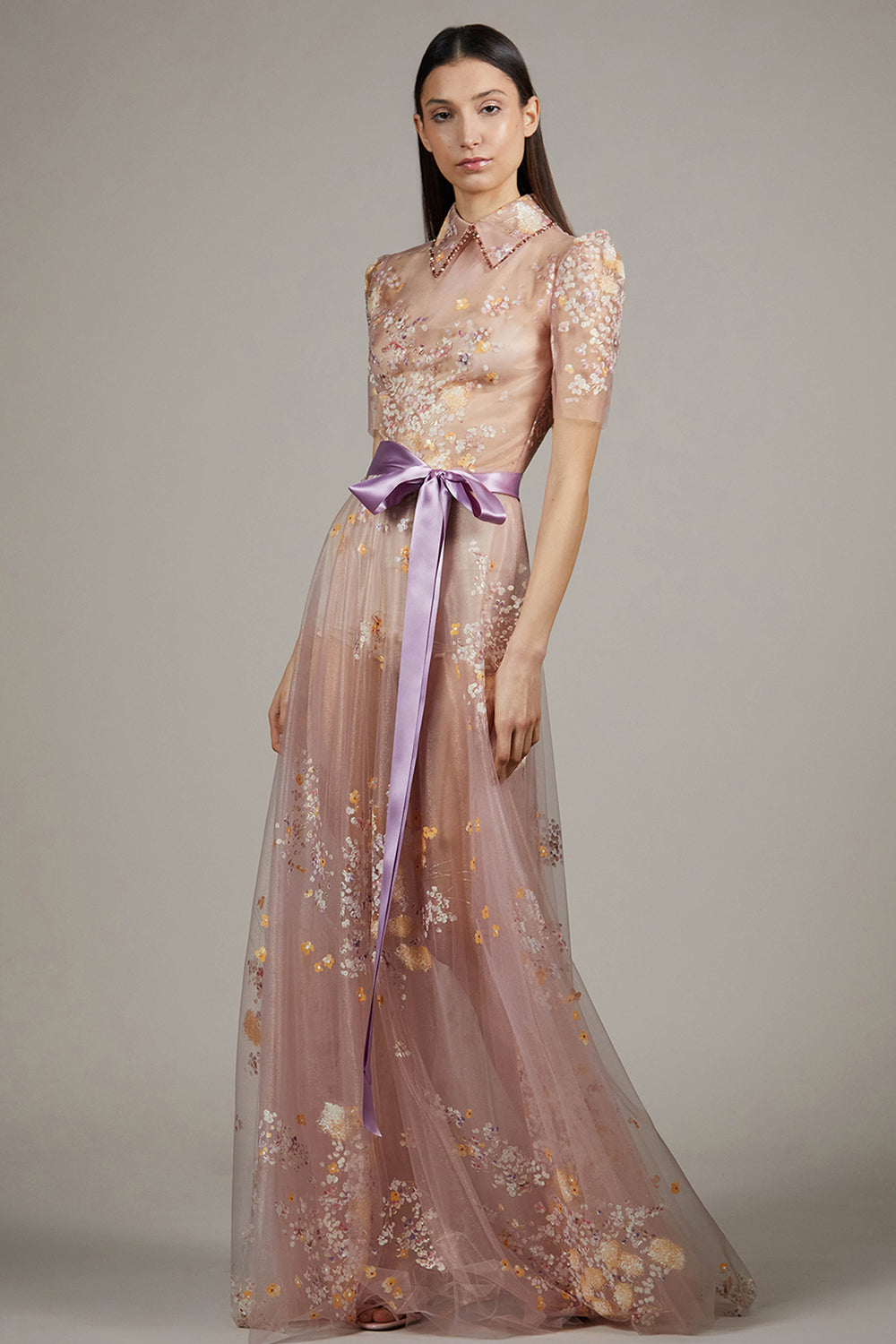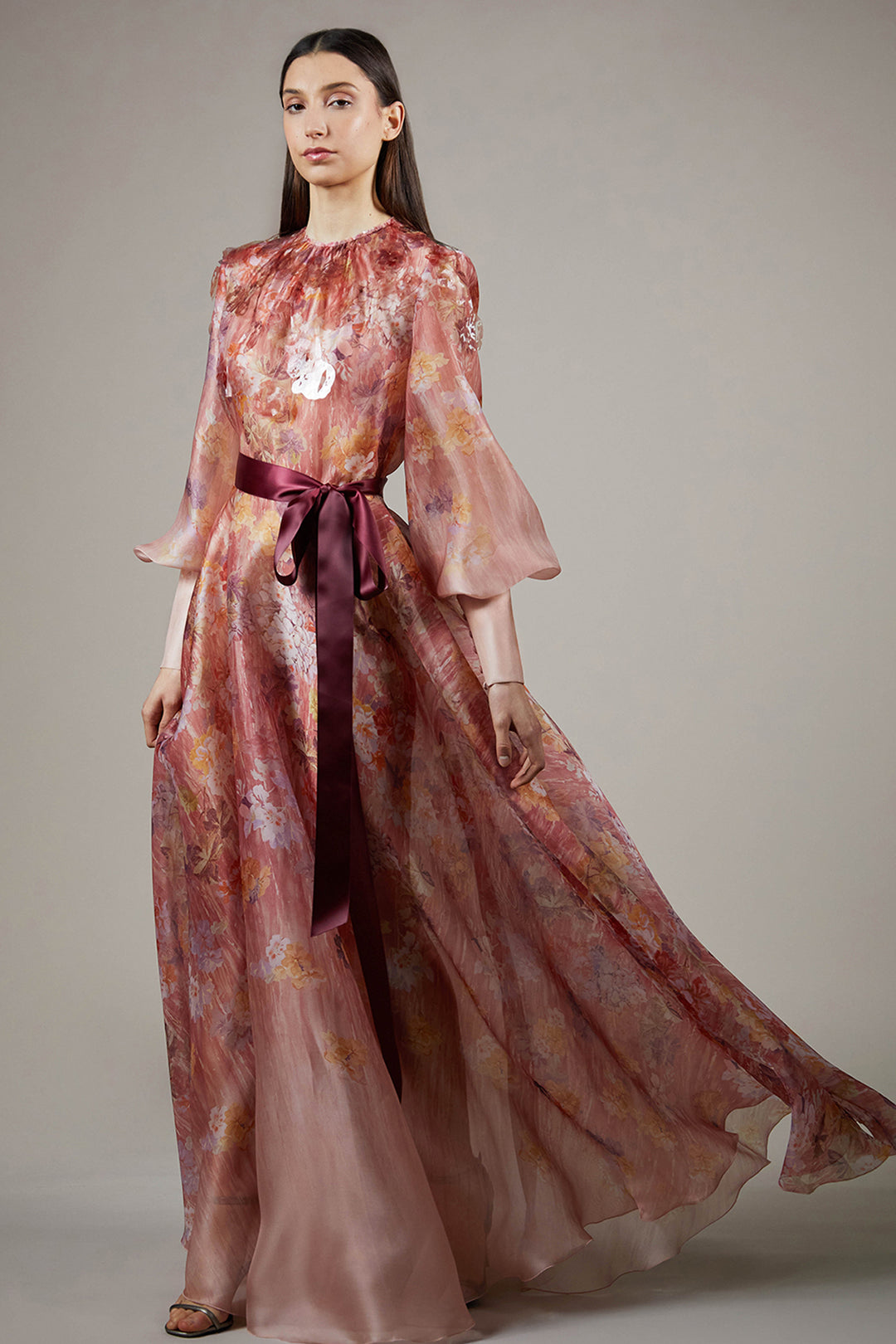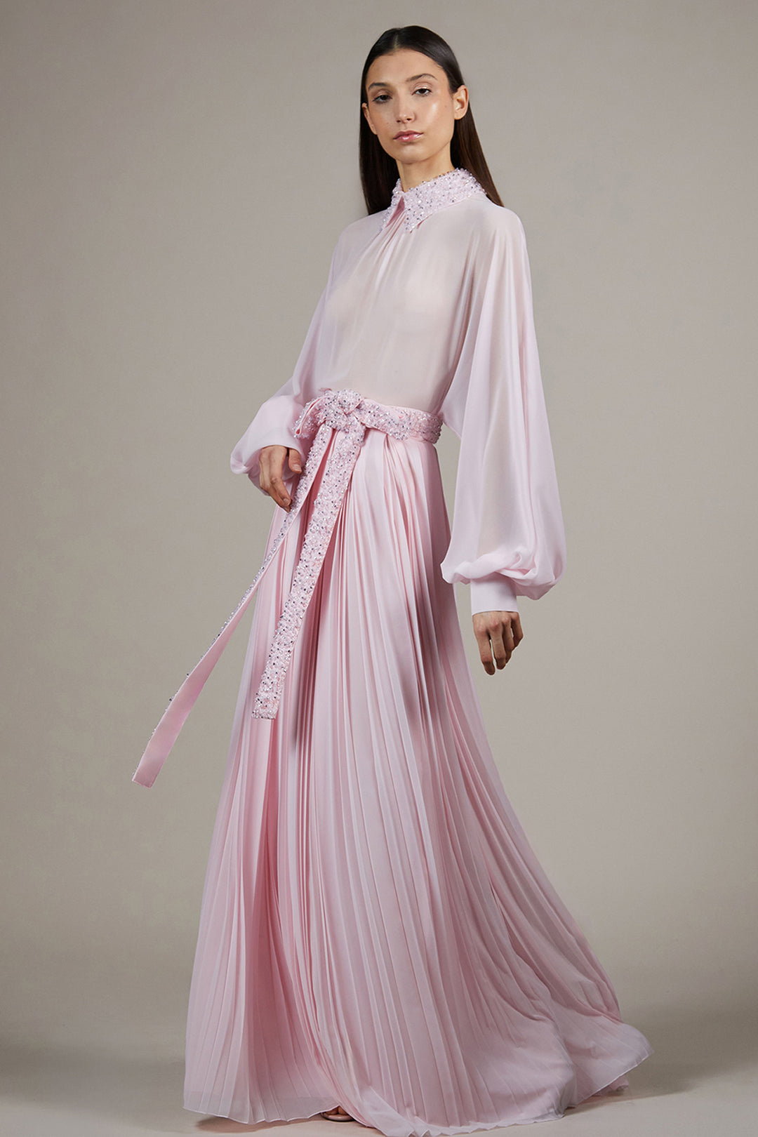 Embellished Organza Dress with Bishop Sleeves
