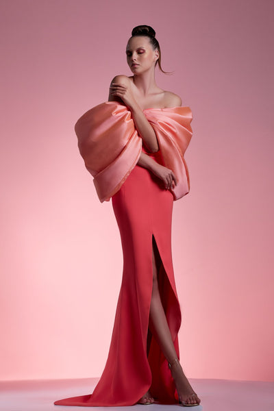 Cadi and Organza Off-The-Shoulder Dress with Overskirt