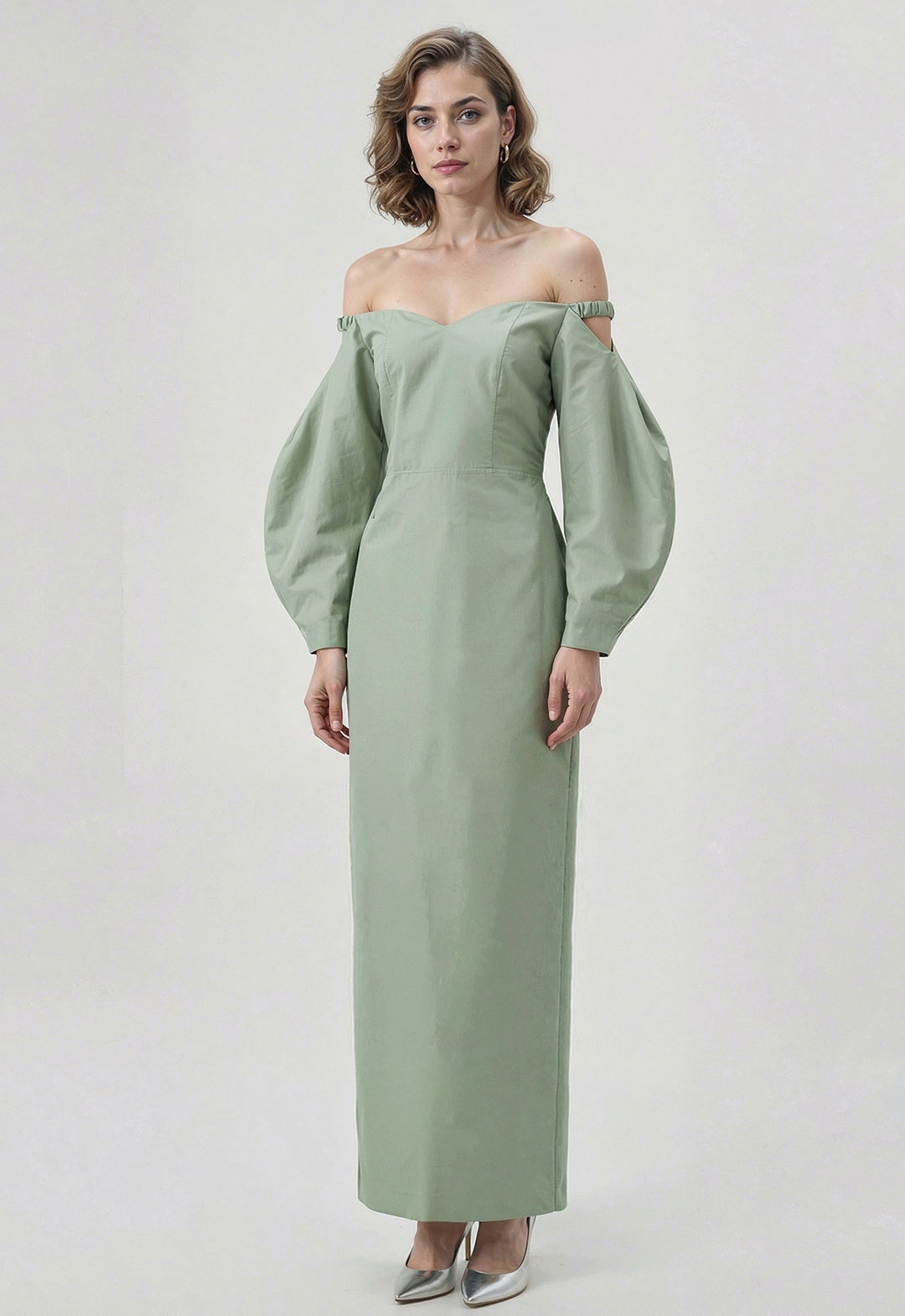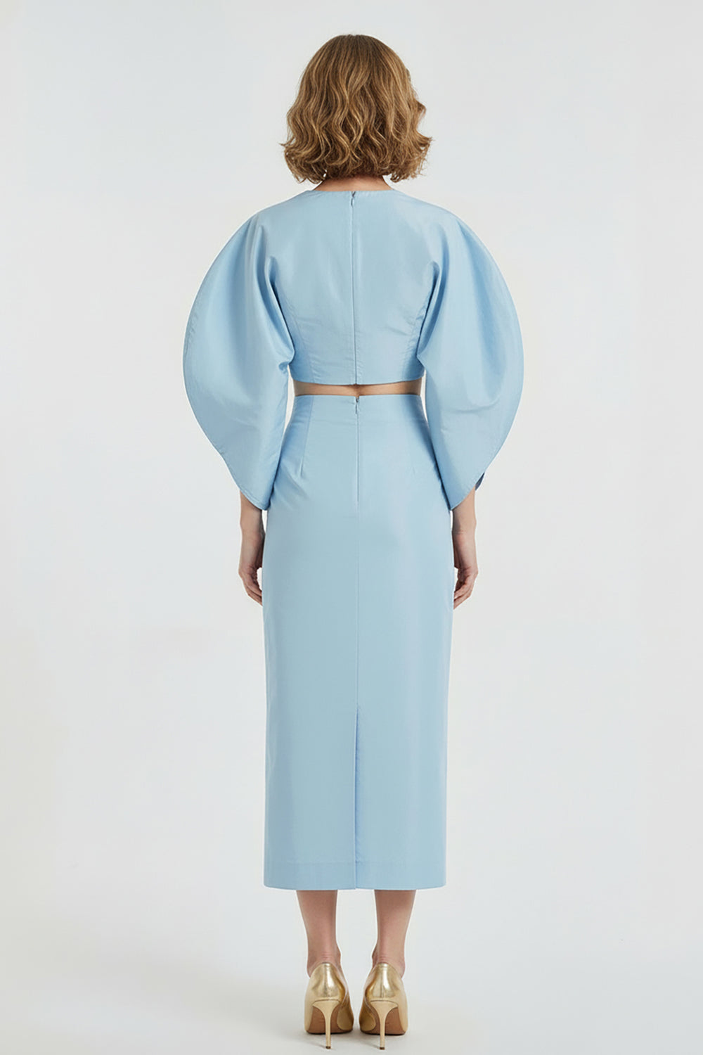 Midi-Length Two-Piece Dress with Balloon Sleeves