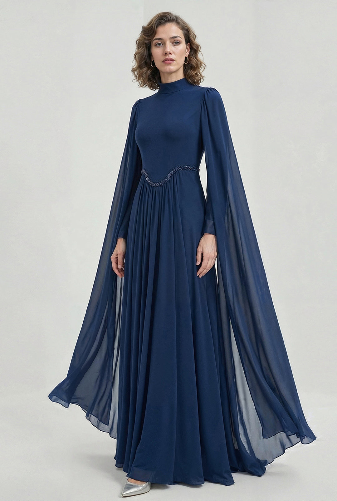 High-Neck Chiffon Cape Dress