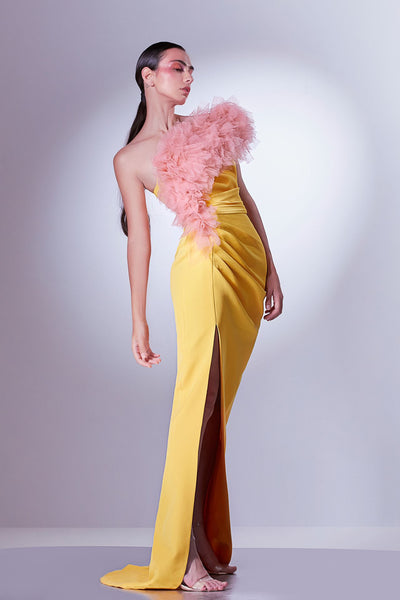Cadi and Organza Off-The-Shoulder Dress with Overskirt