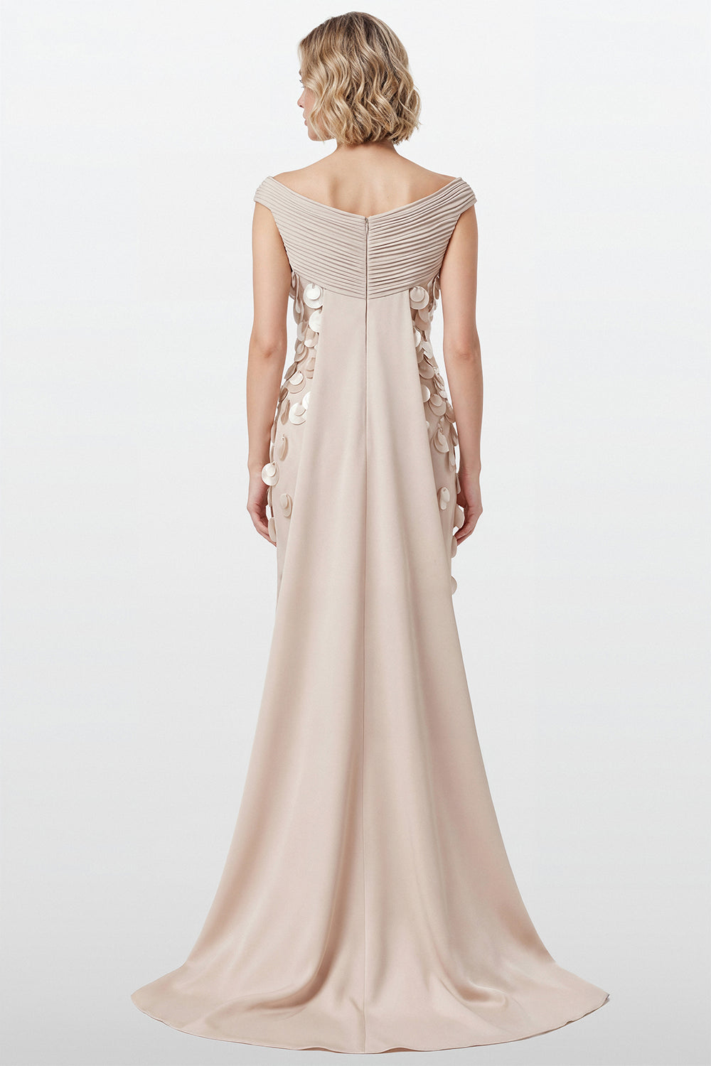 Off-Shoulder Crepe Gown with Disc Appliqués