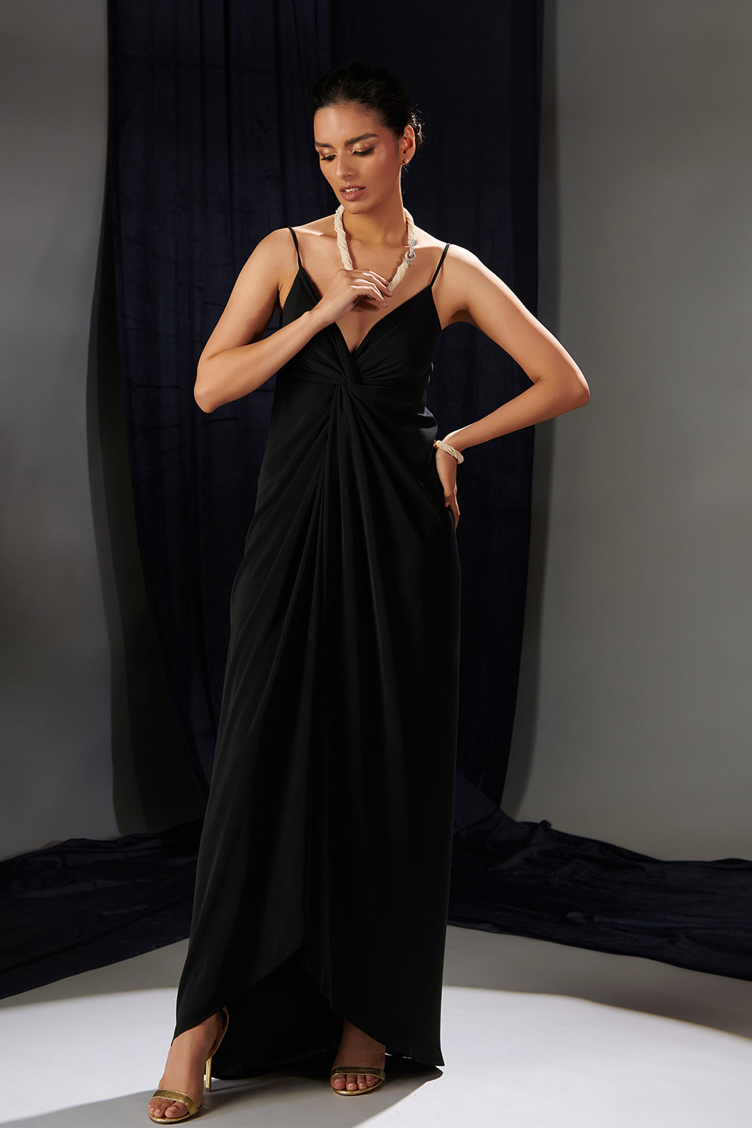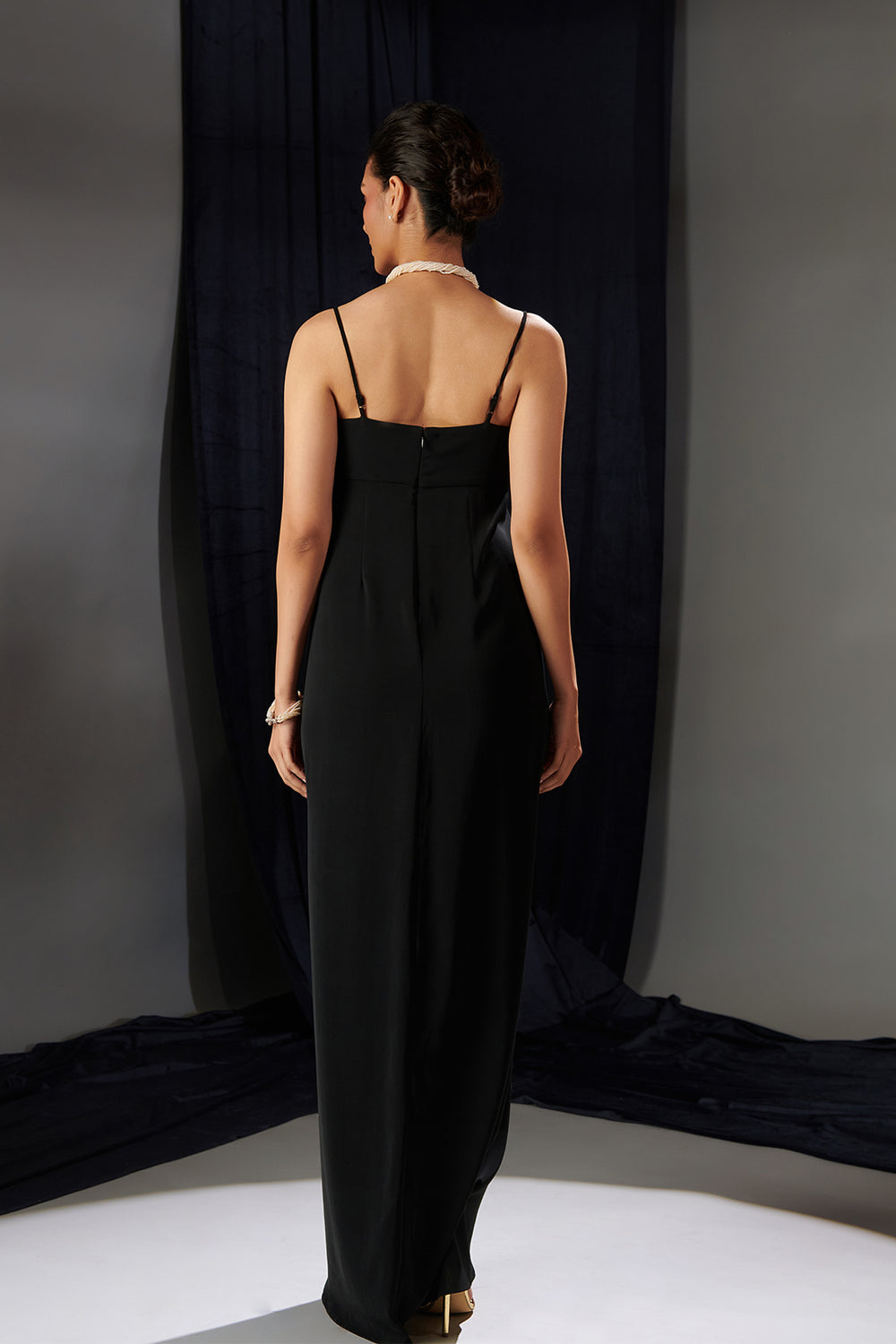 Strapless Dress with Asymmetric Draping and High-Low Skirt