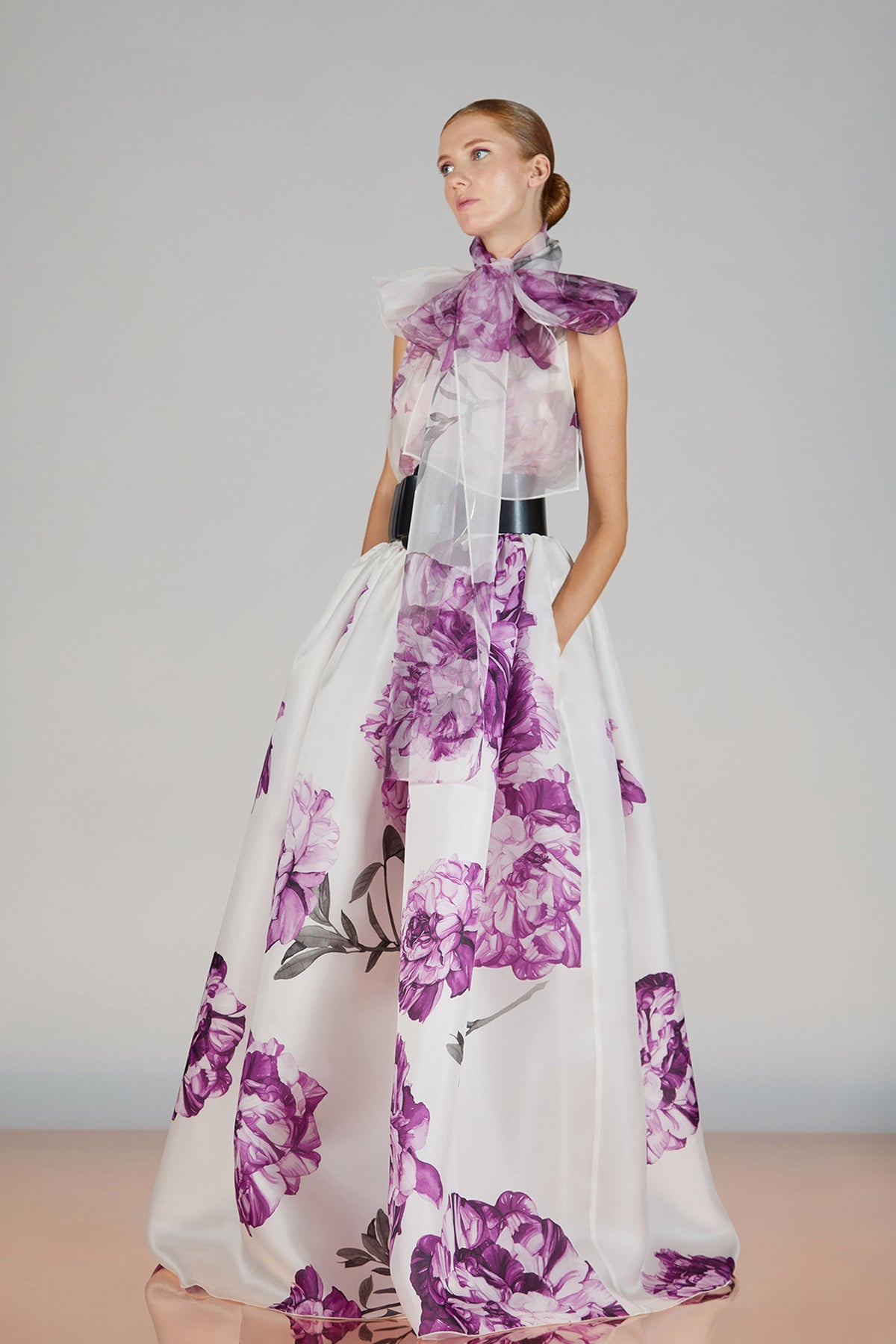Multicoloured organza long dress. Featuring an a-line silhouette and a jewel neckline with sleeveless.