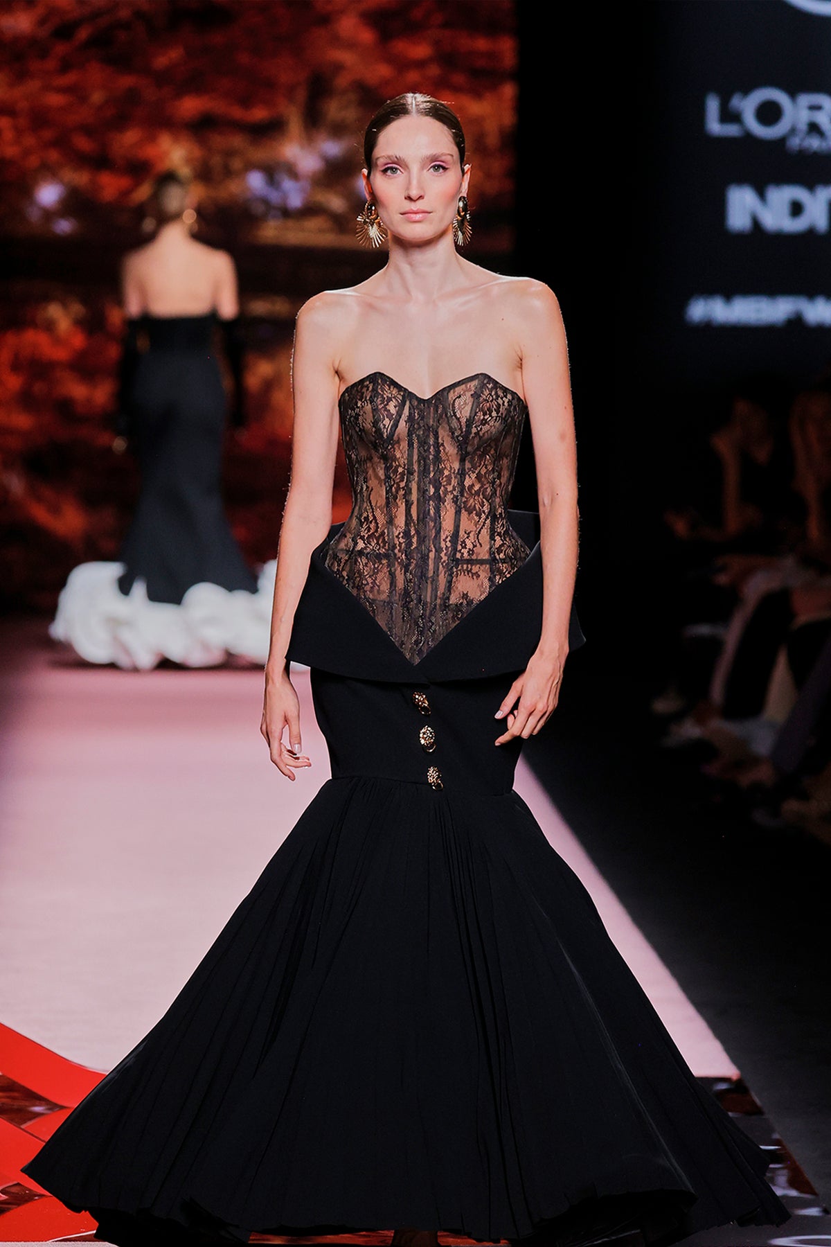 Black mermaid long dress. Featuring a sweetheart neckline with lace fabric.