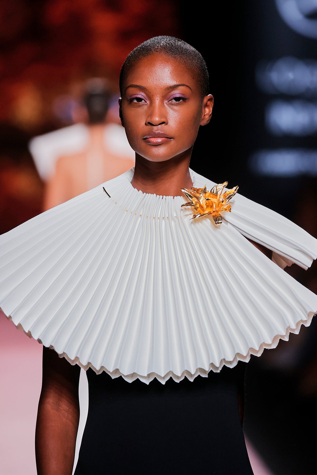 Black and white satin long dress. Featuring a column silhouette with plunging neckline.