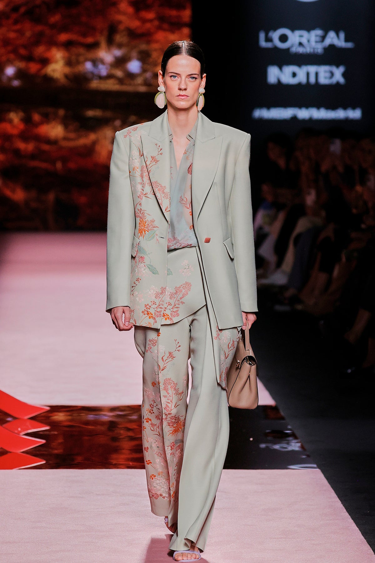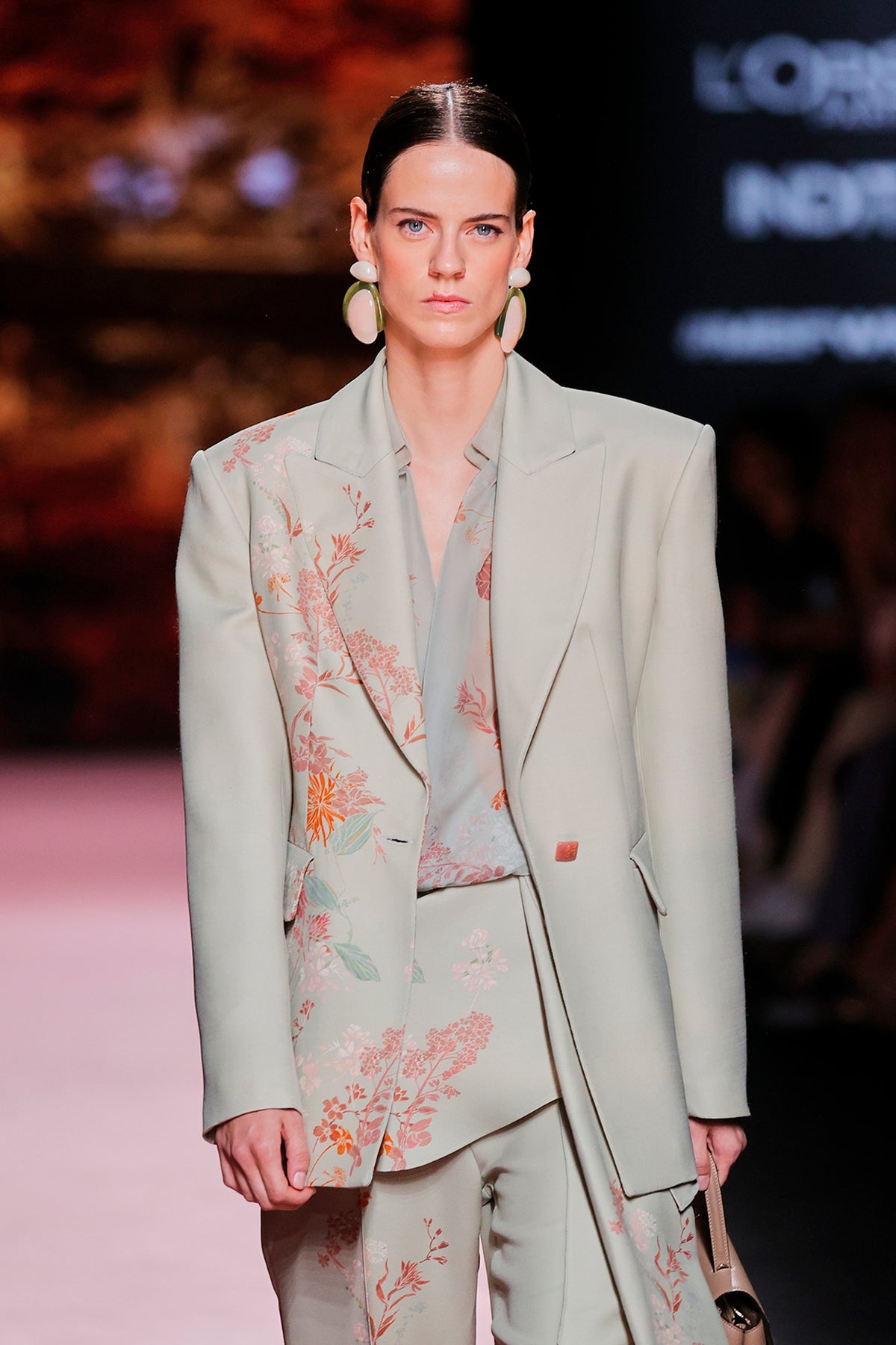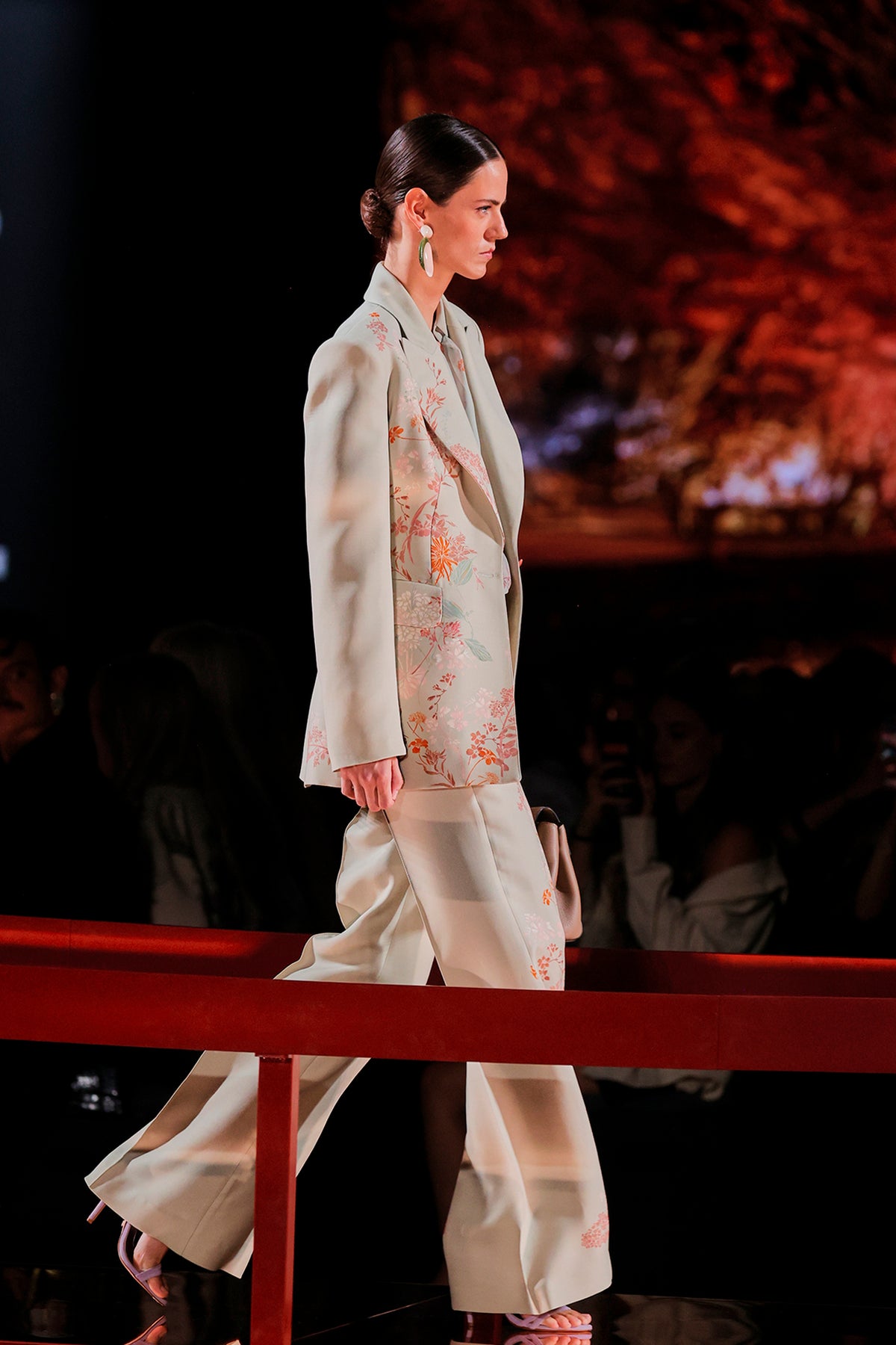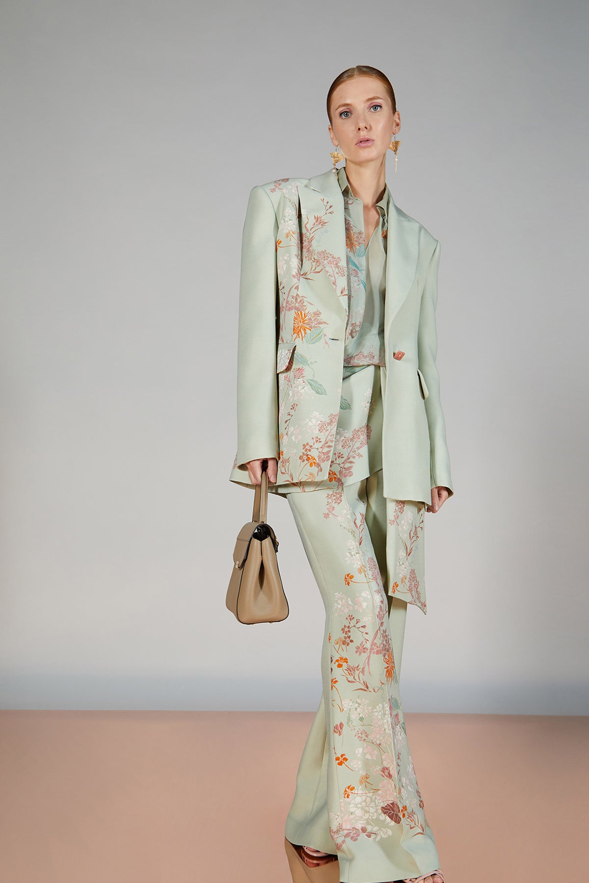 Multicolor satin top and pants. Featuring a V-neckline with loose and long sleeves.