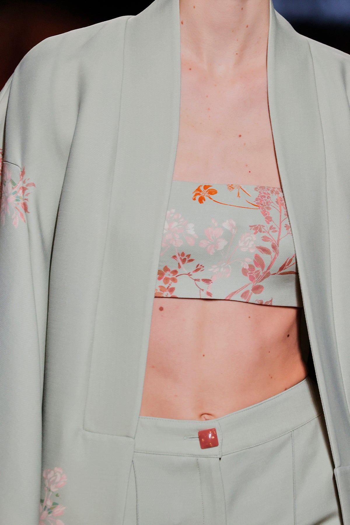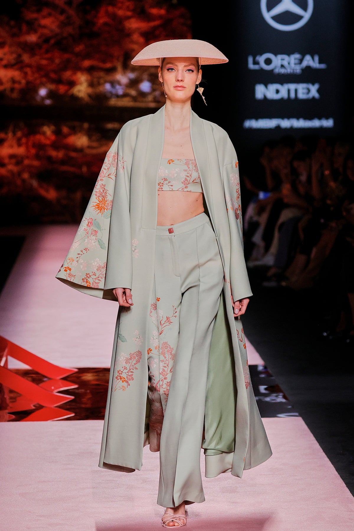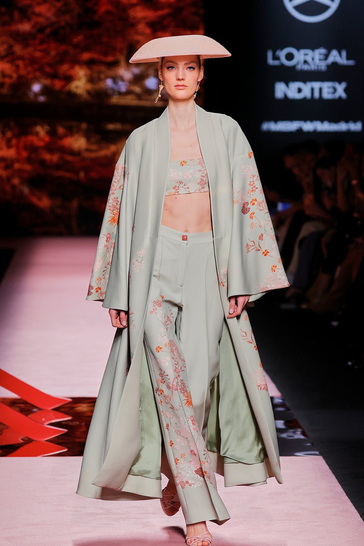 Multicolor top and long pants dress. Featuring a V-neckline with long bell sleeves and satin fabrics.