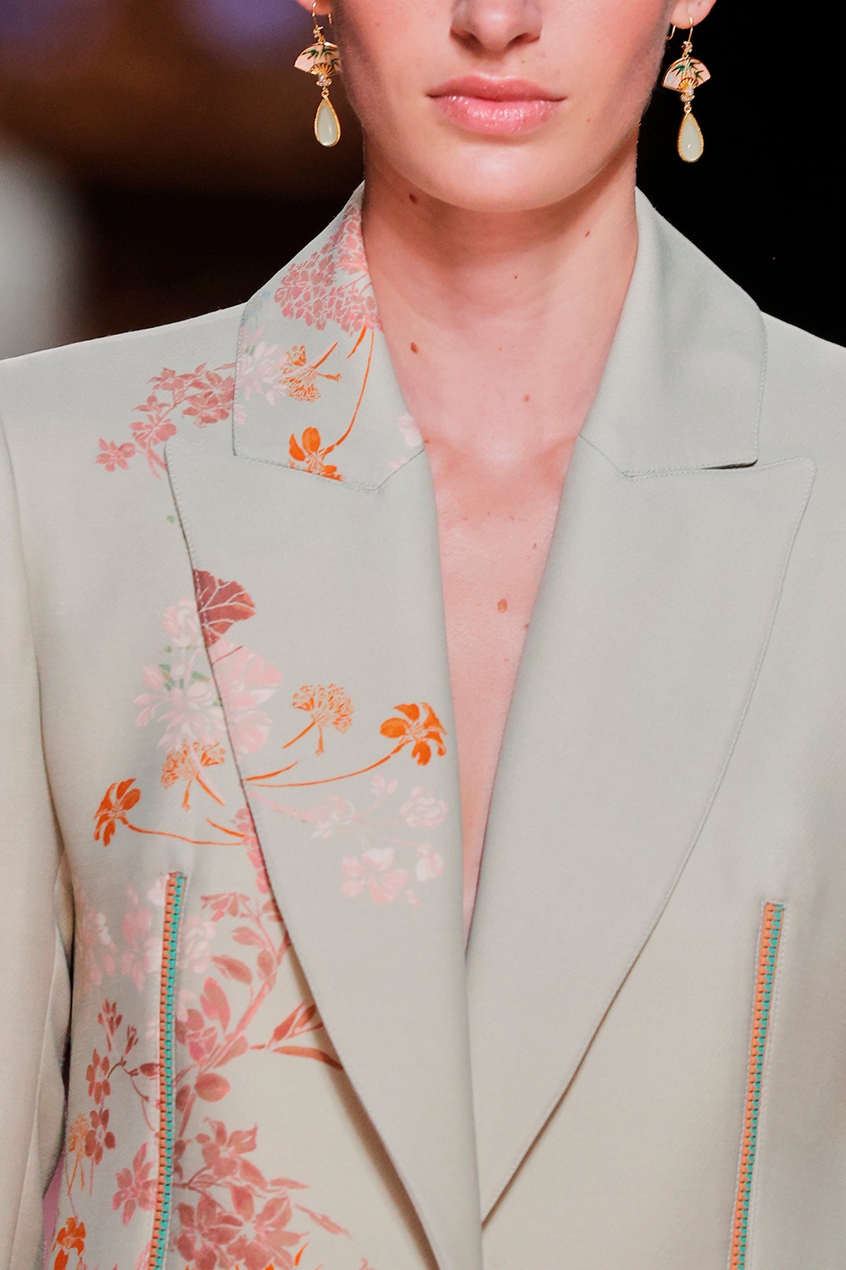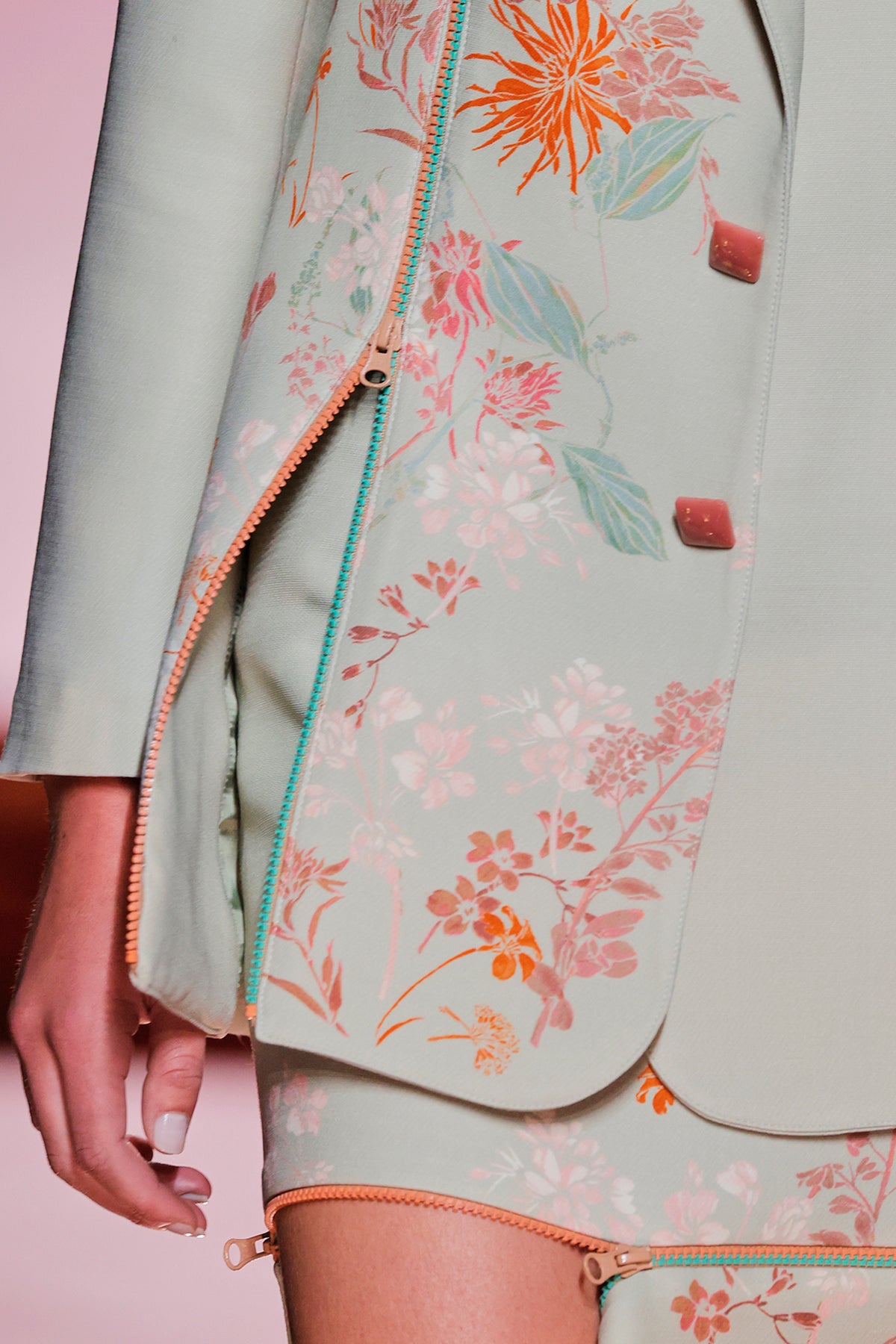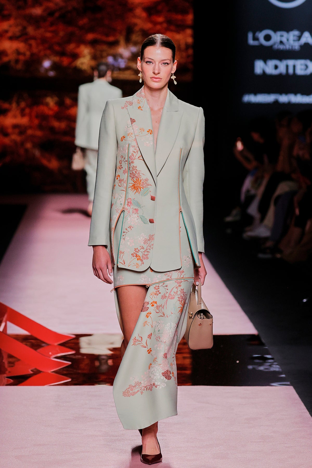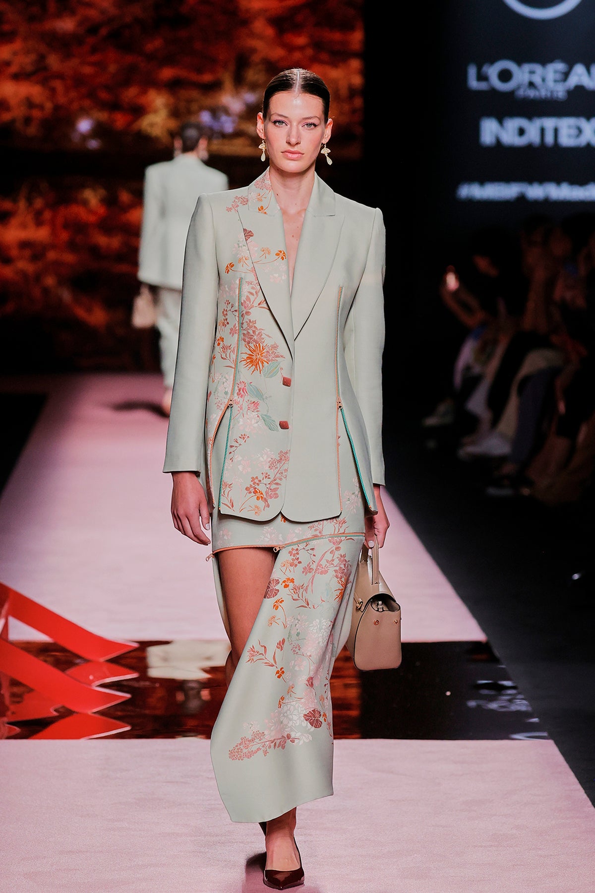 Multicolor top and skirt. Featuring a short dress with a V-neckline, loose, long sleeves and satin fabric.