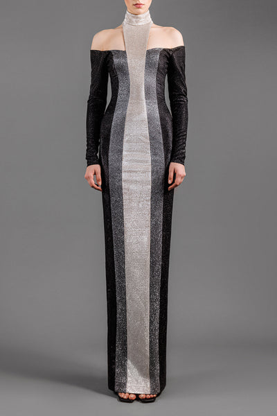 Lamé Train Dress with Crystal Embroidery