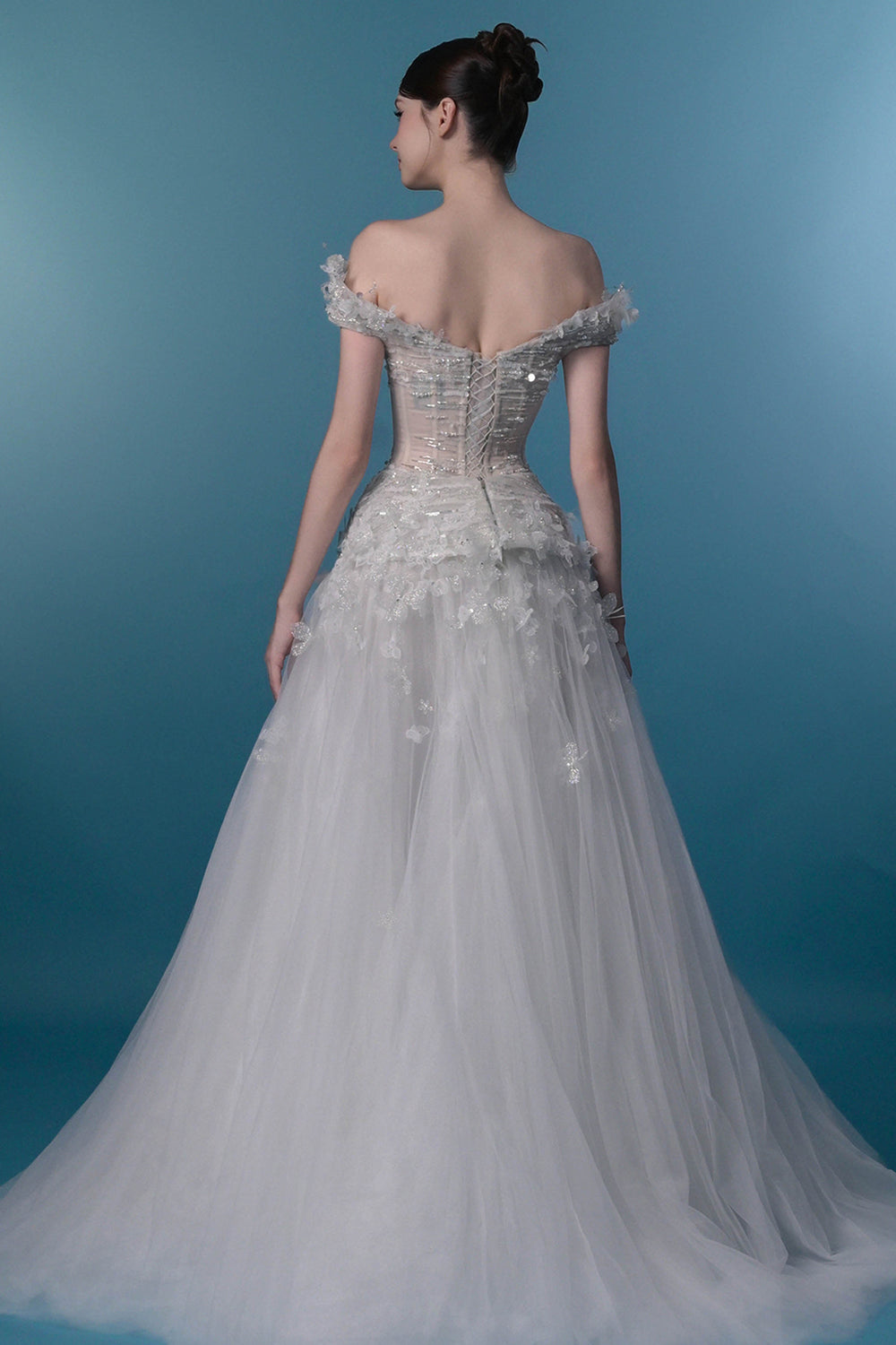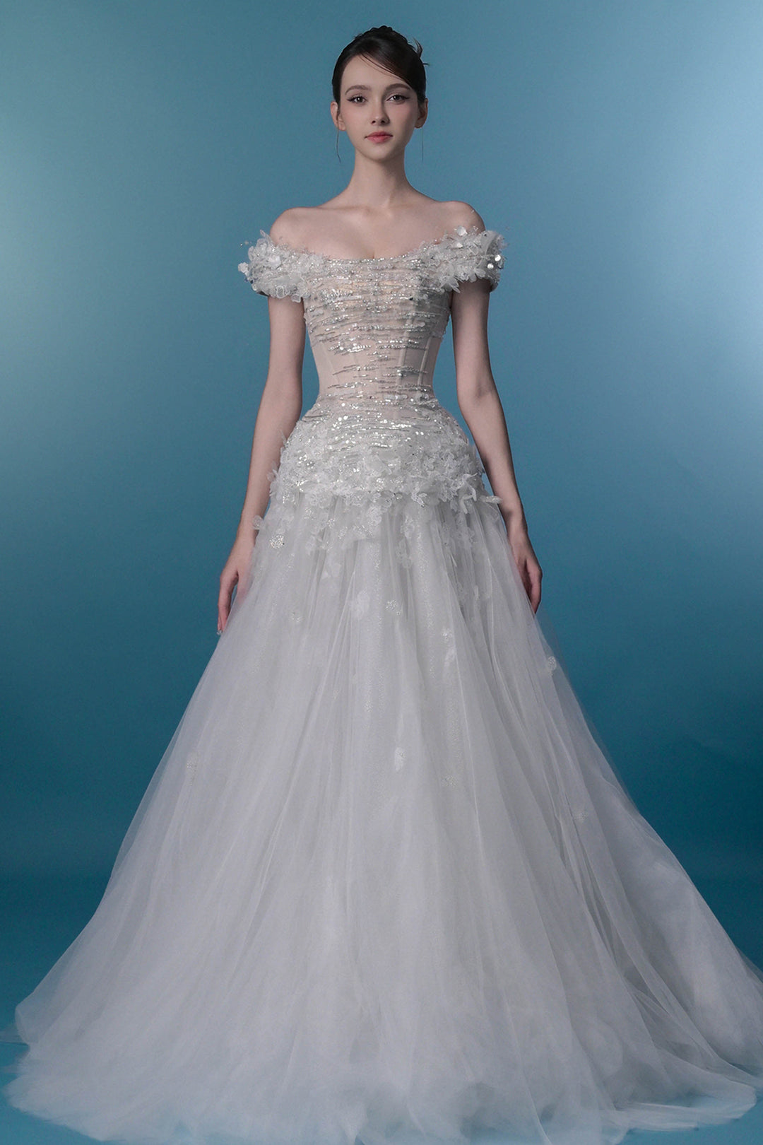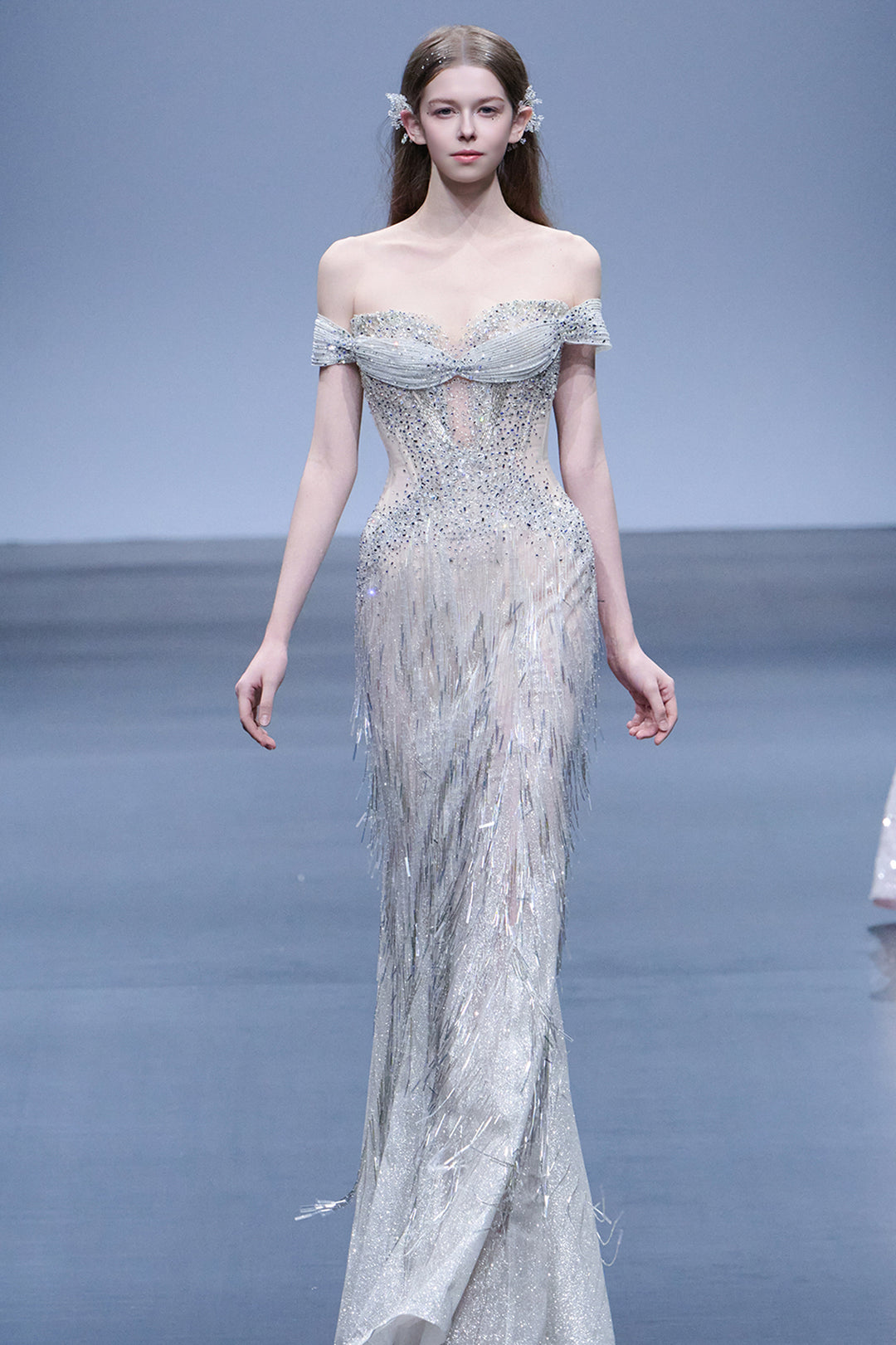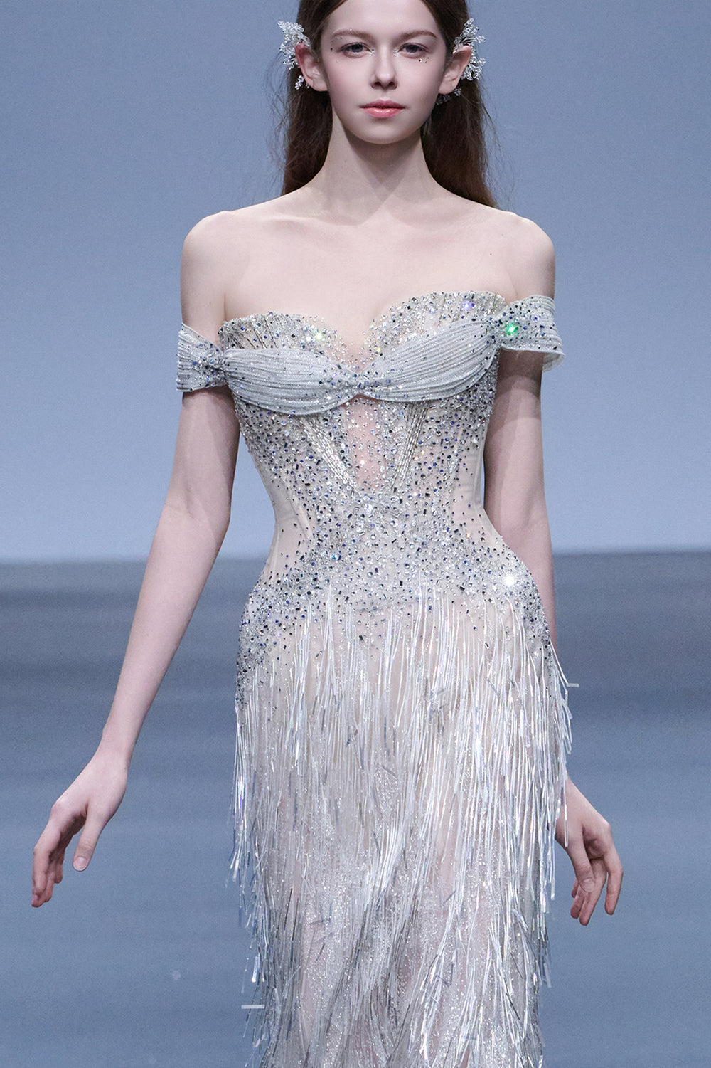 Crystal-Embroidered Dress with Off-The-Shoulder Corset