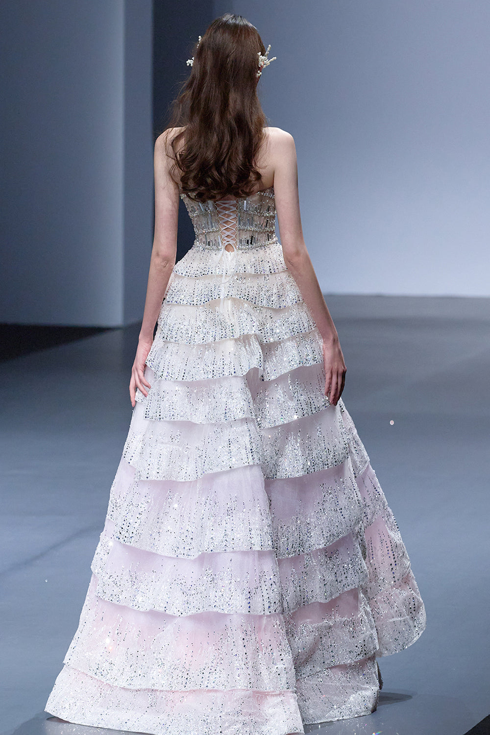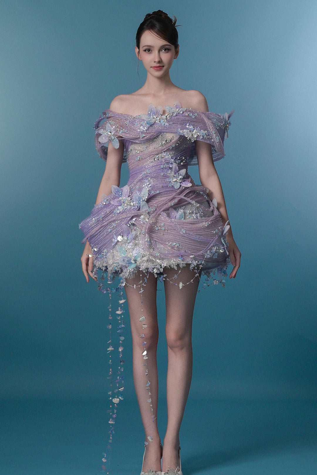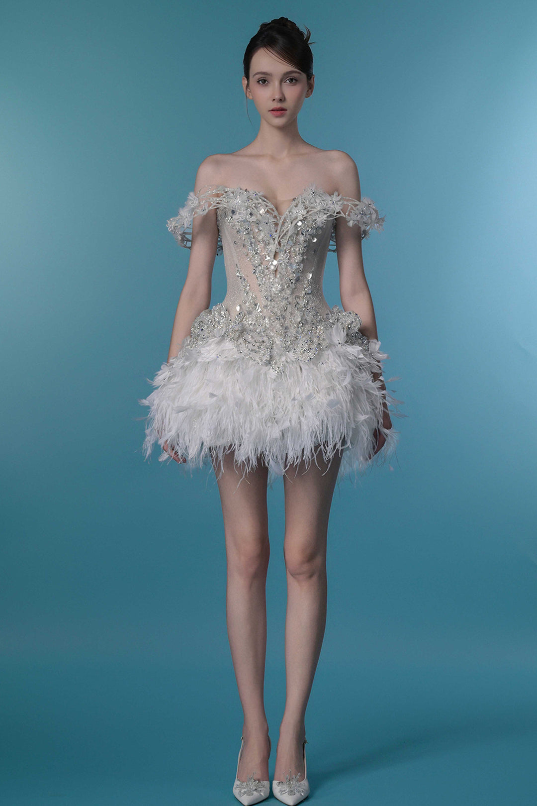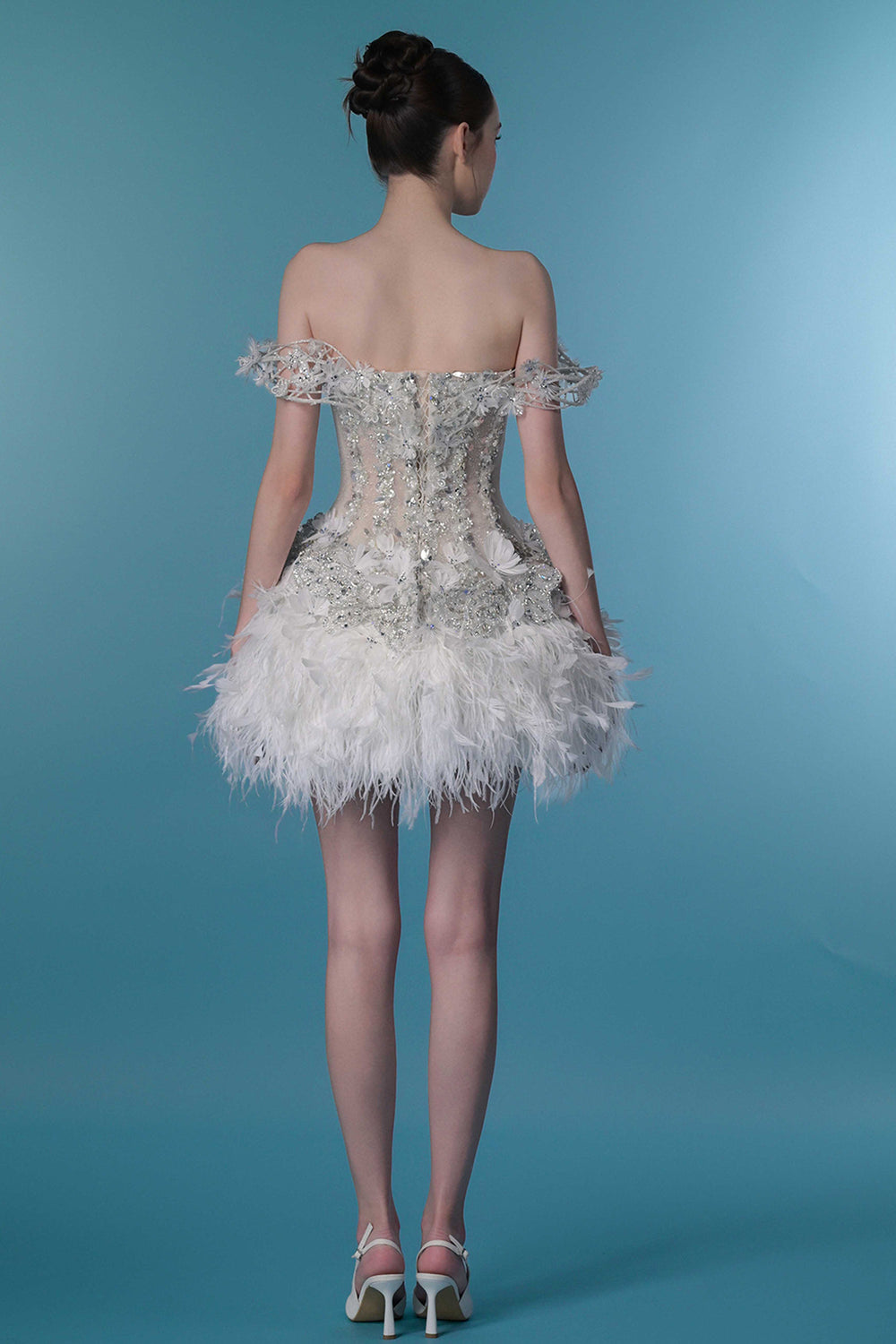 Crystal-Embroidered Dress with Off-The-Shoulder Corset