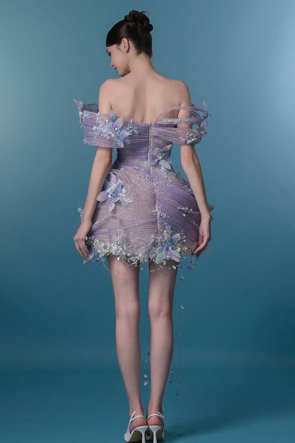 Frosted Floral Off-the-Shoulder Mini Dress