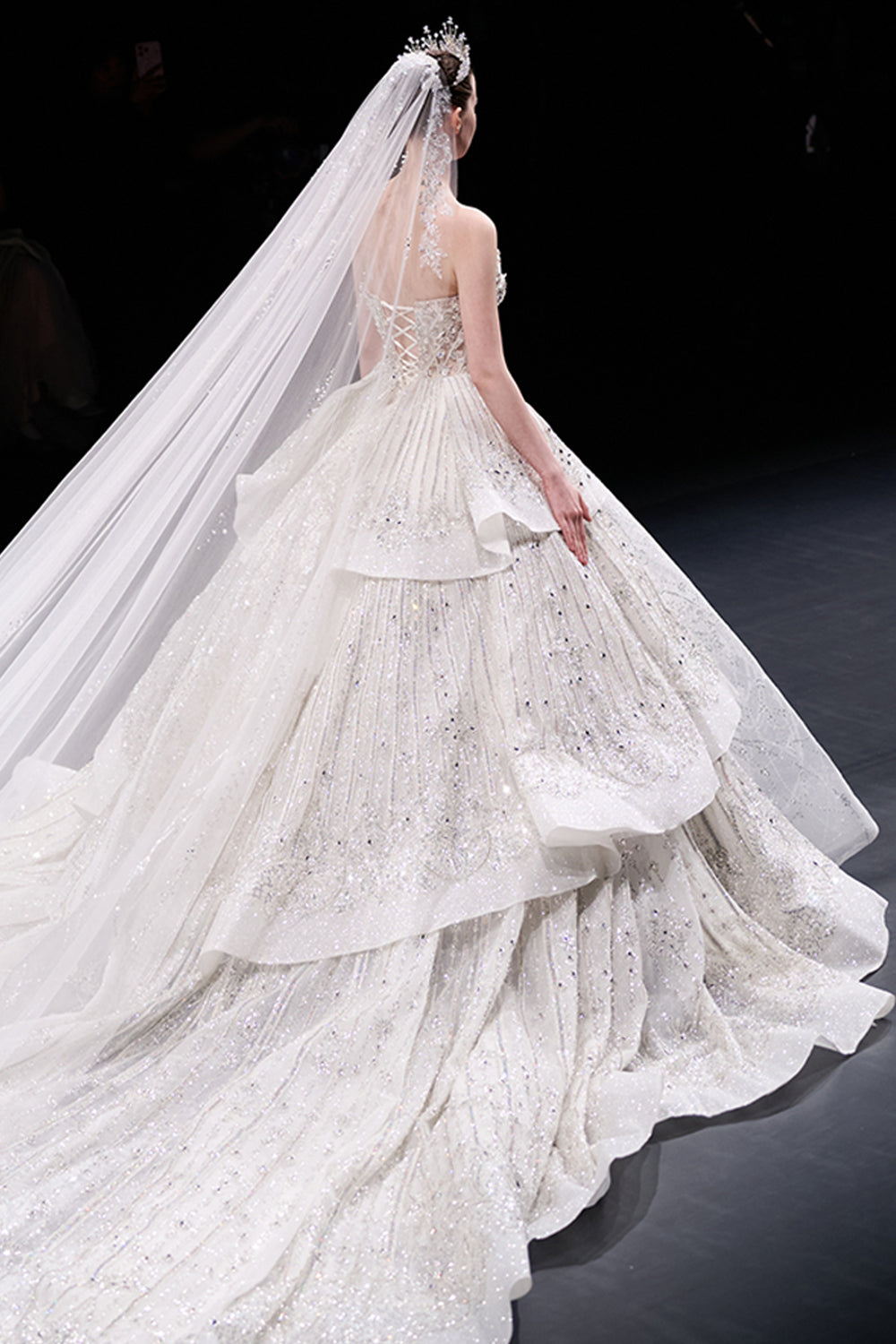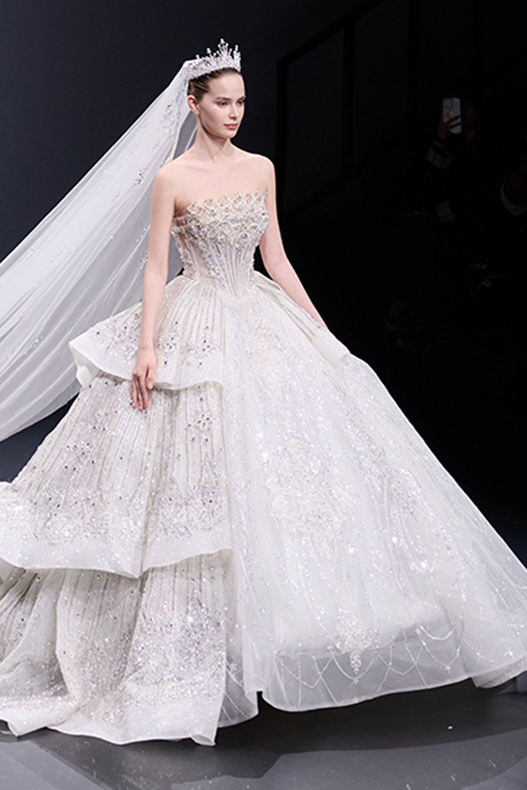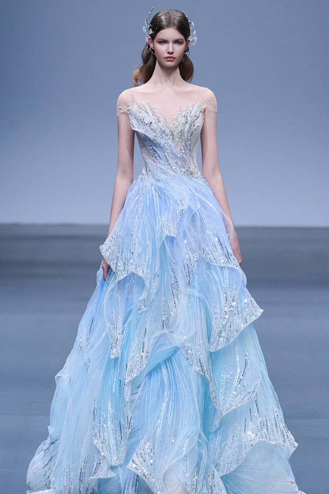 Sheer A-Line with Crystal-Bed Bodice
