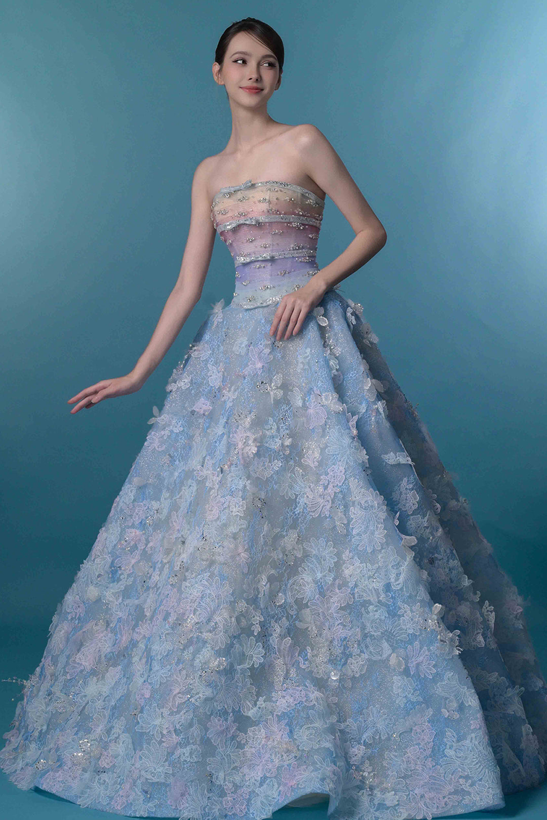Floor-Length Strapless Crystal Bodice Dress