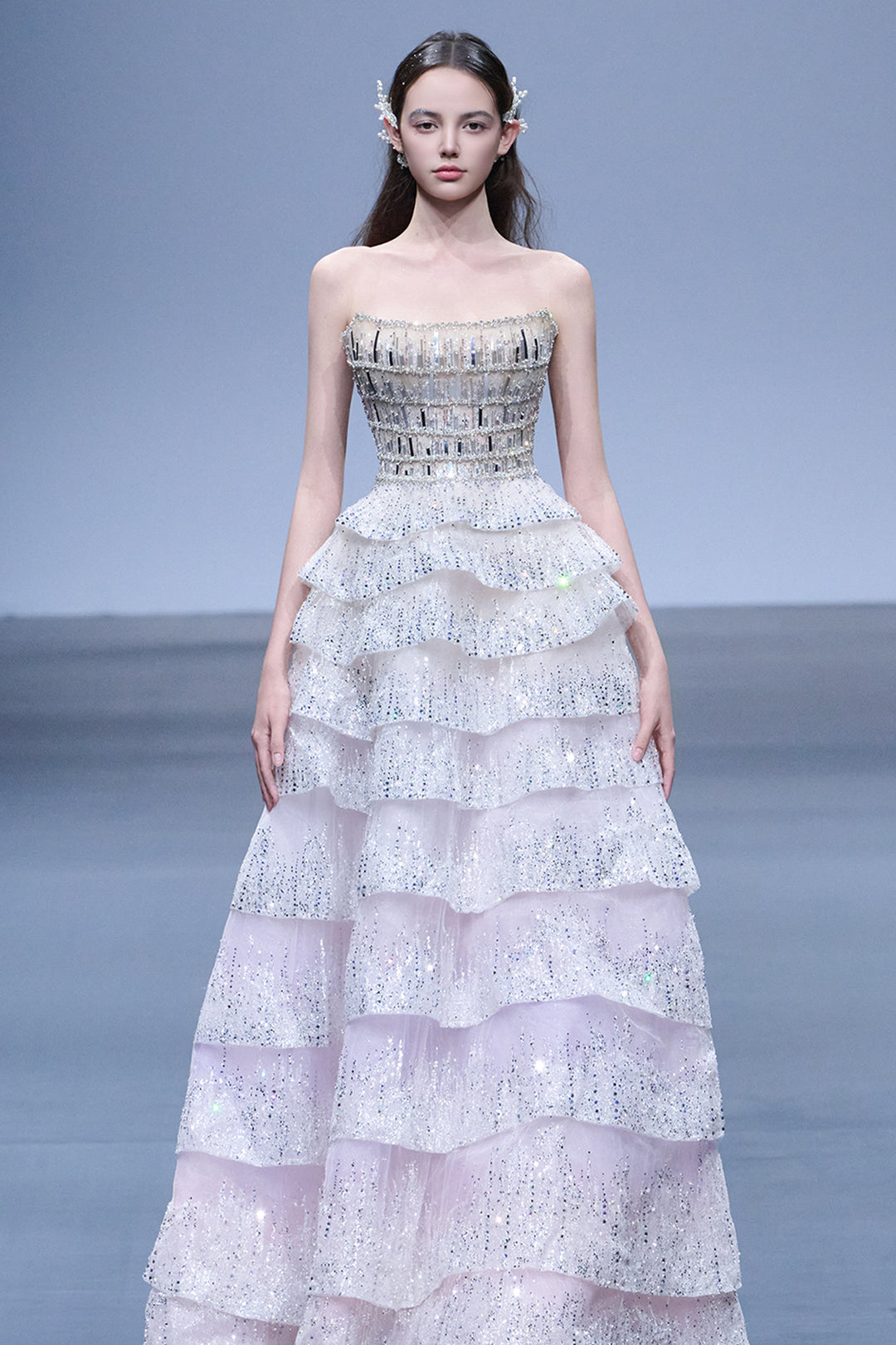 Moonlit Beaded Strapless Long Dress