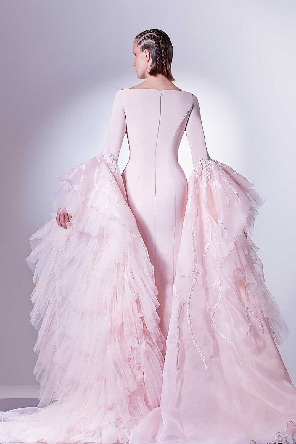Tulle Dress with Cascading Laser-Cut Cape