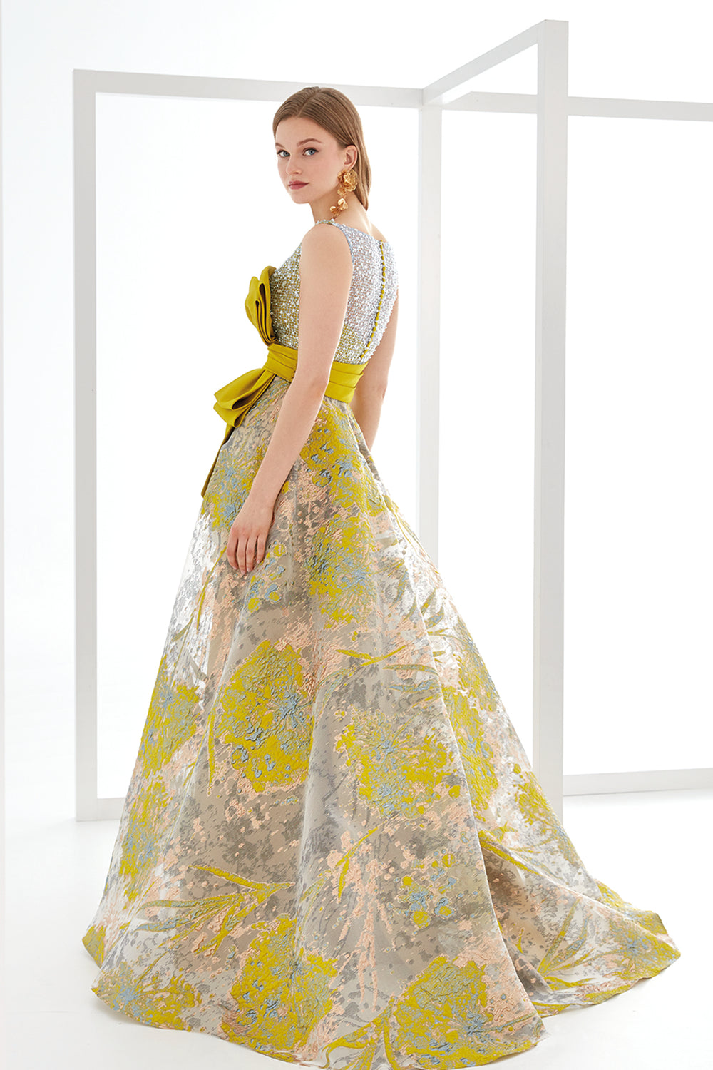 Evening Dress with Bateau Neckline and A-Line Skirt