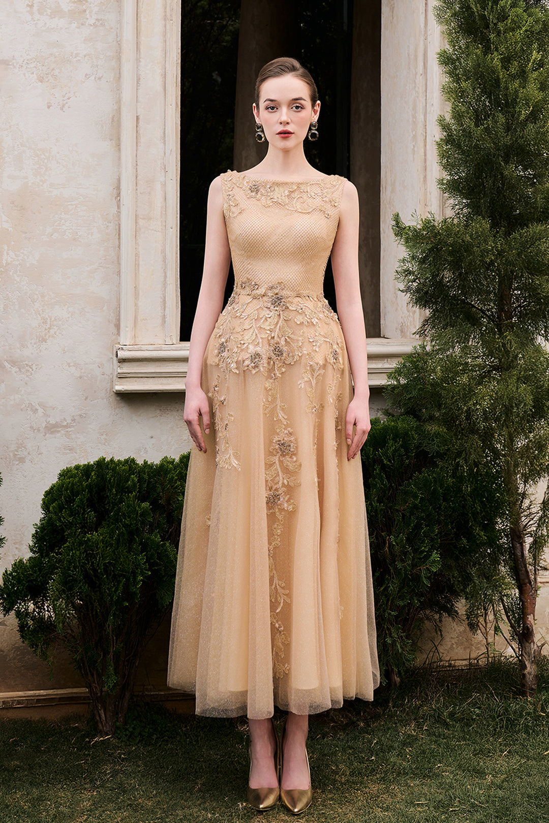 Crystal-Embellished Column Dress