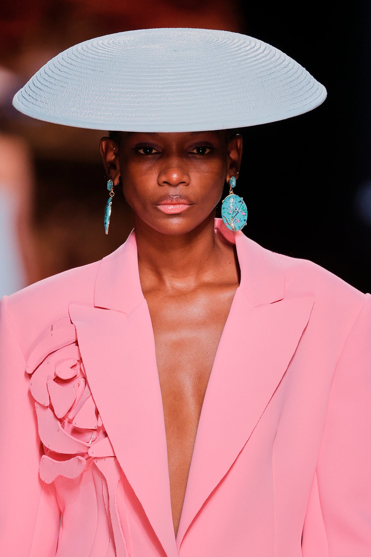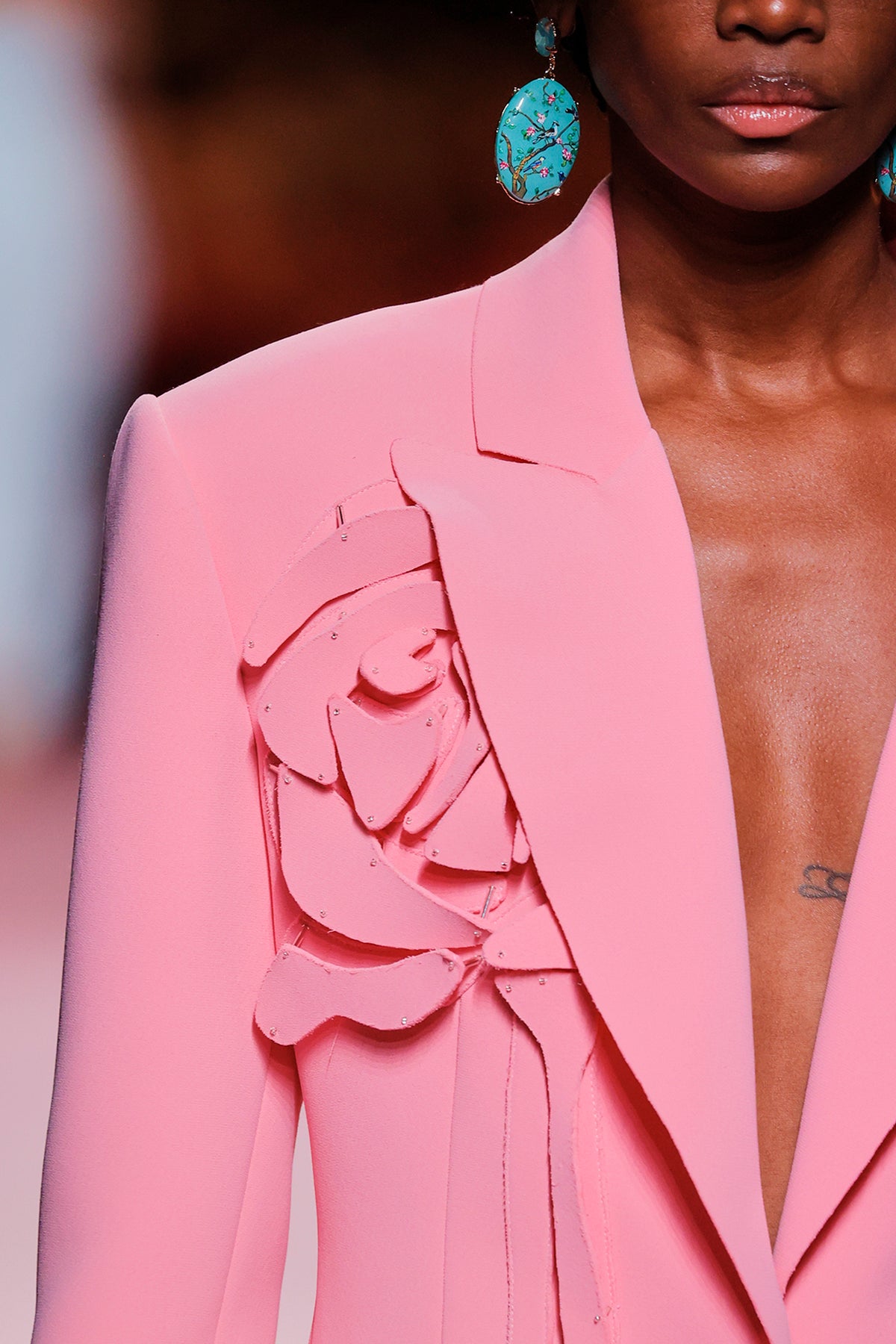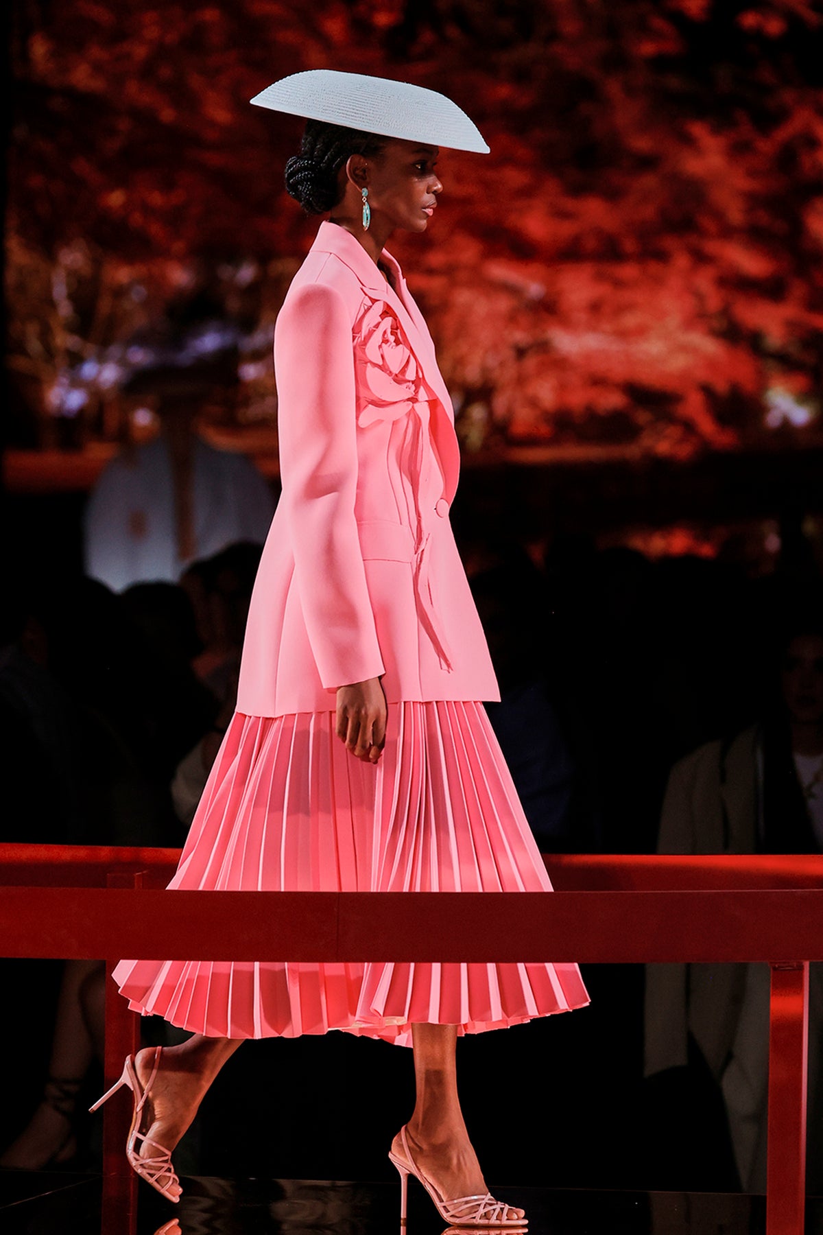 Pink top and skirt long dress. Featuring V-neckline that fits with long sleeves and satin fabrics.