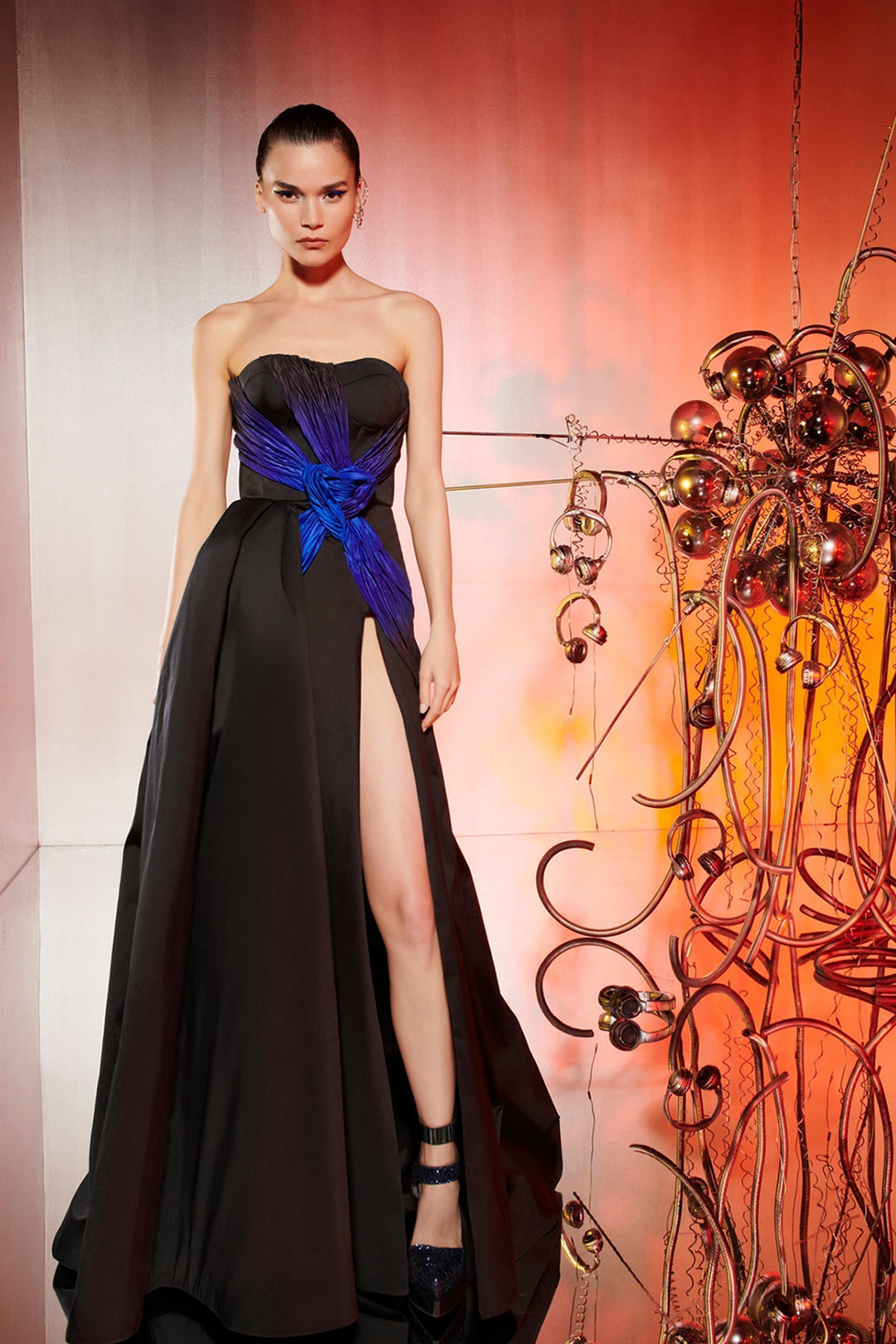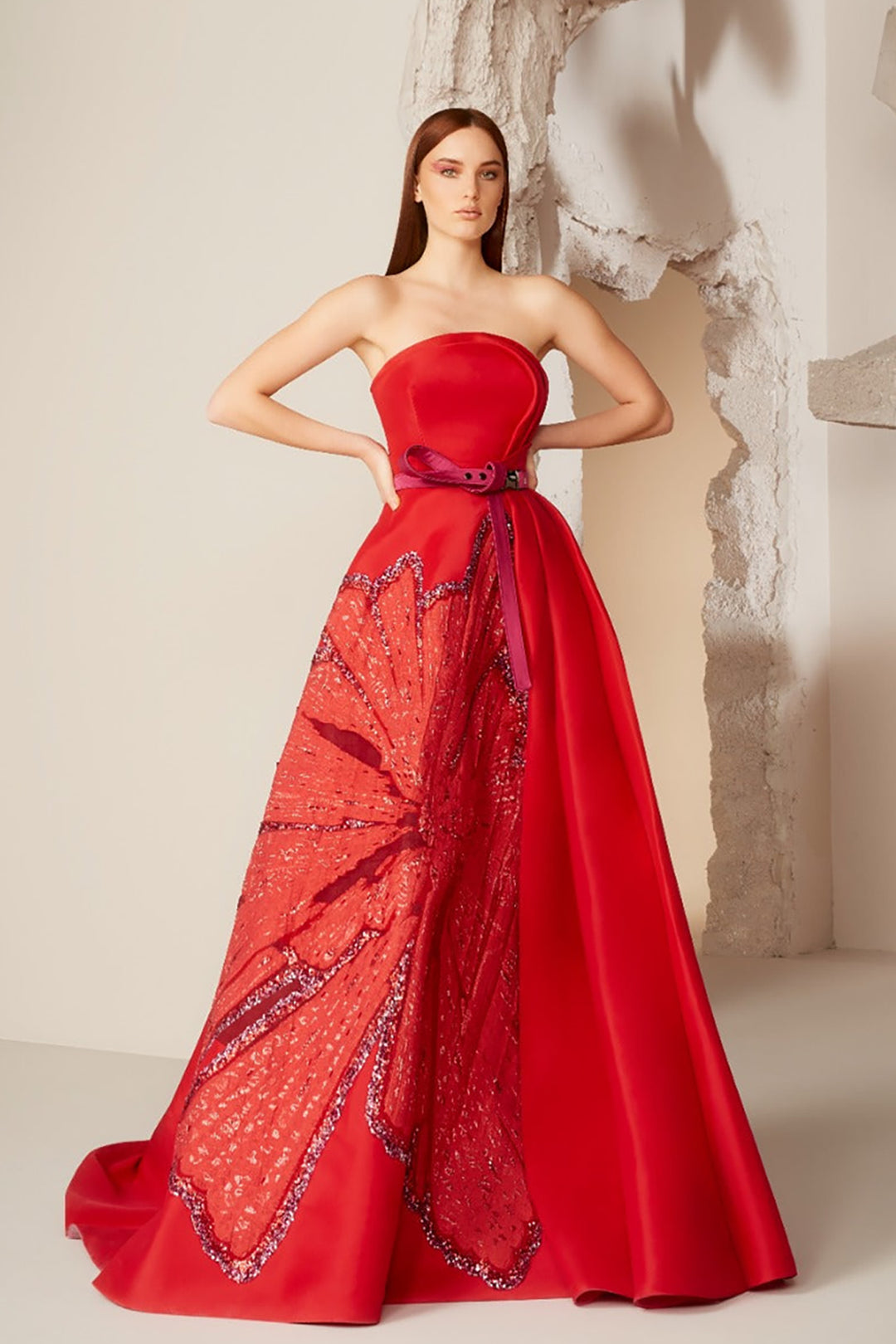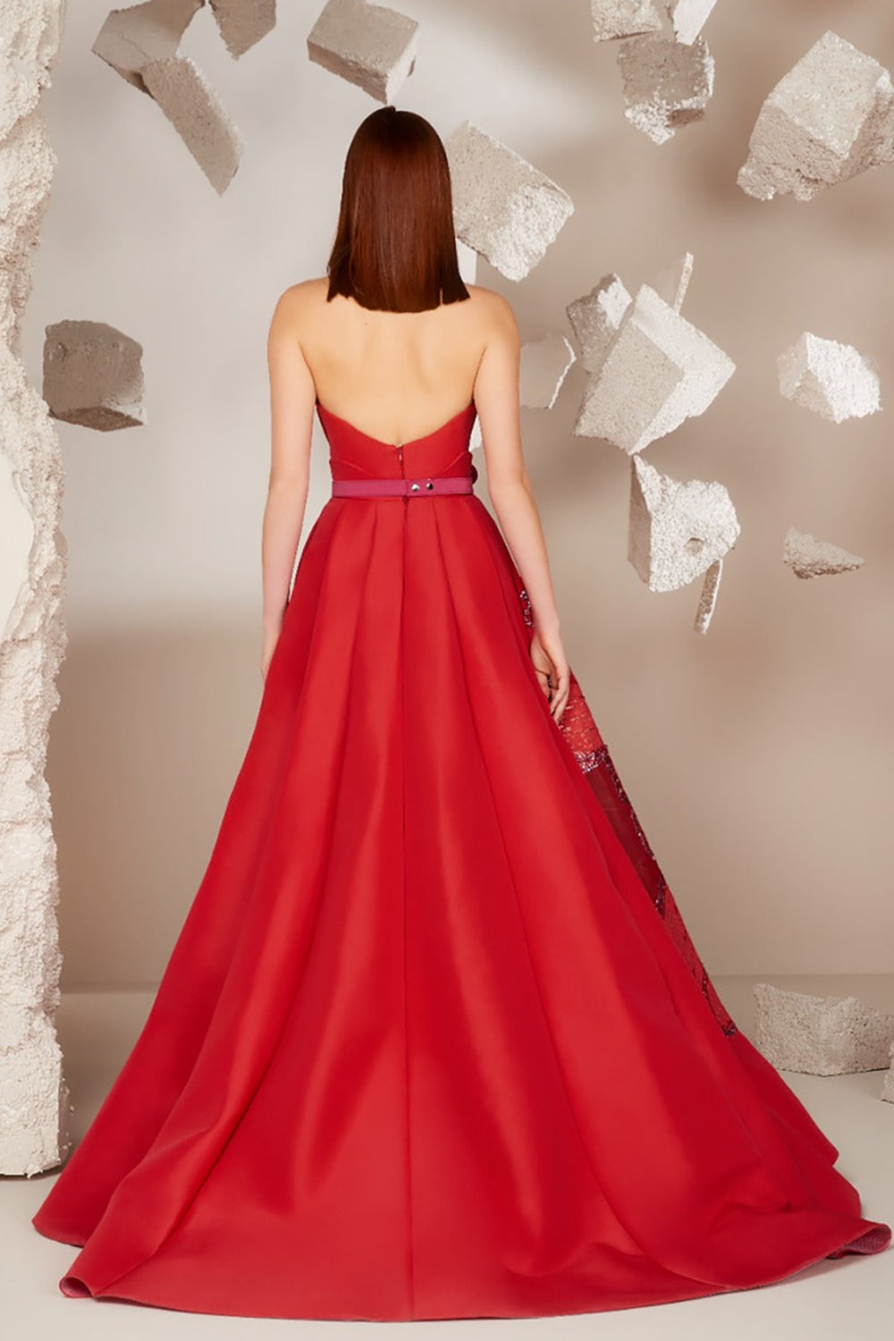 Mermaid Dress with Strapless Bodice and Cape Sleeve