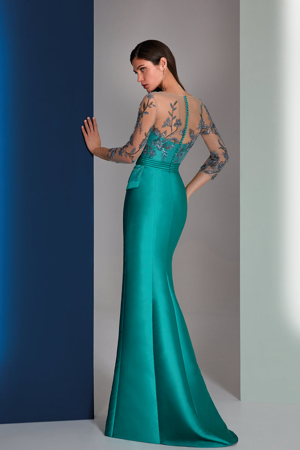 Mikado Mermaid Dress with Jewel Neckline