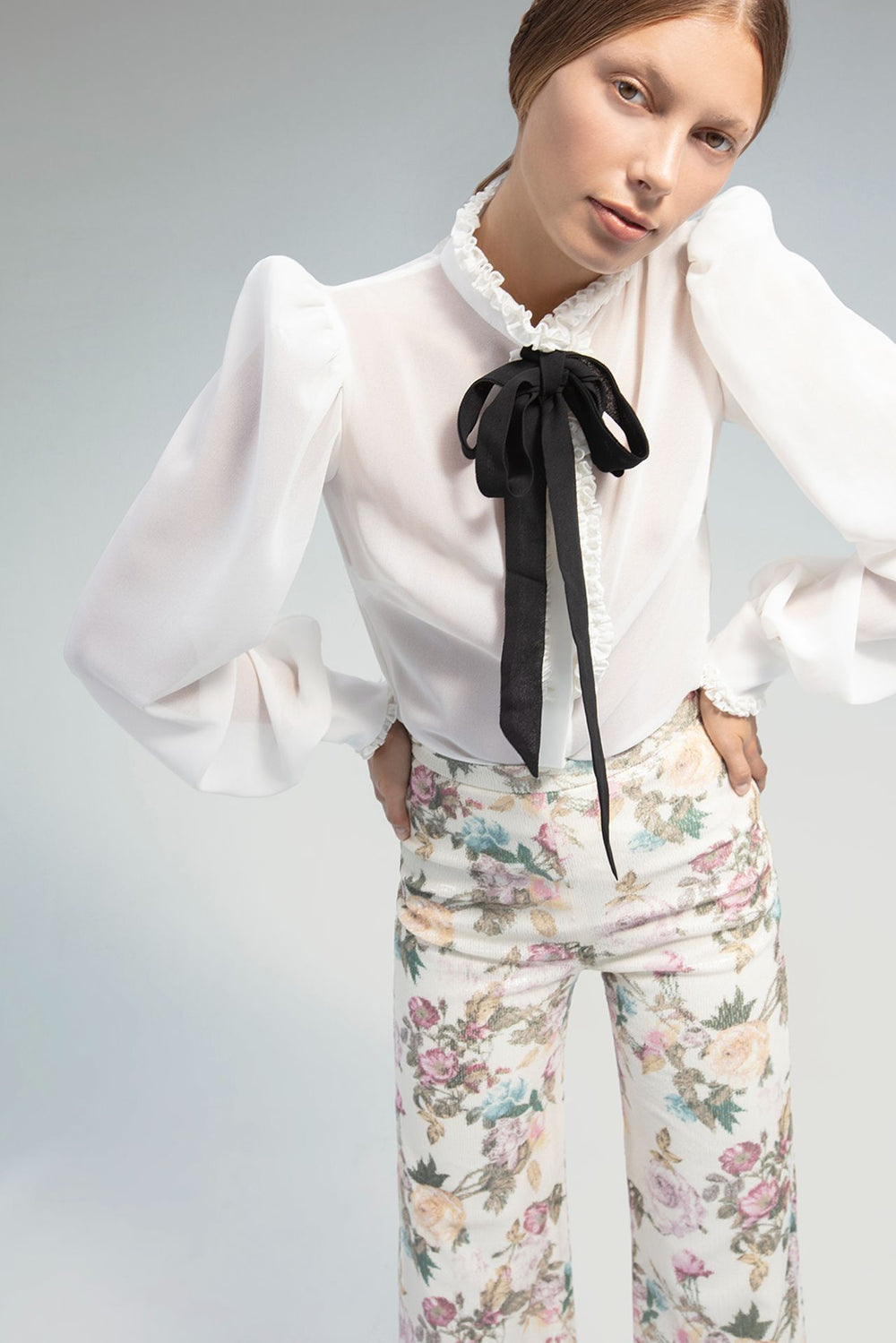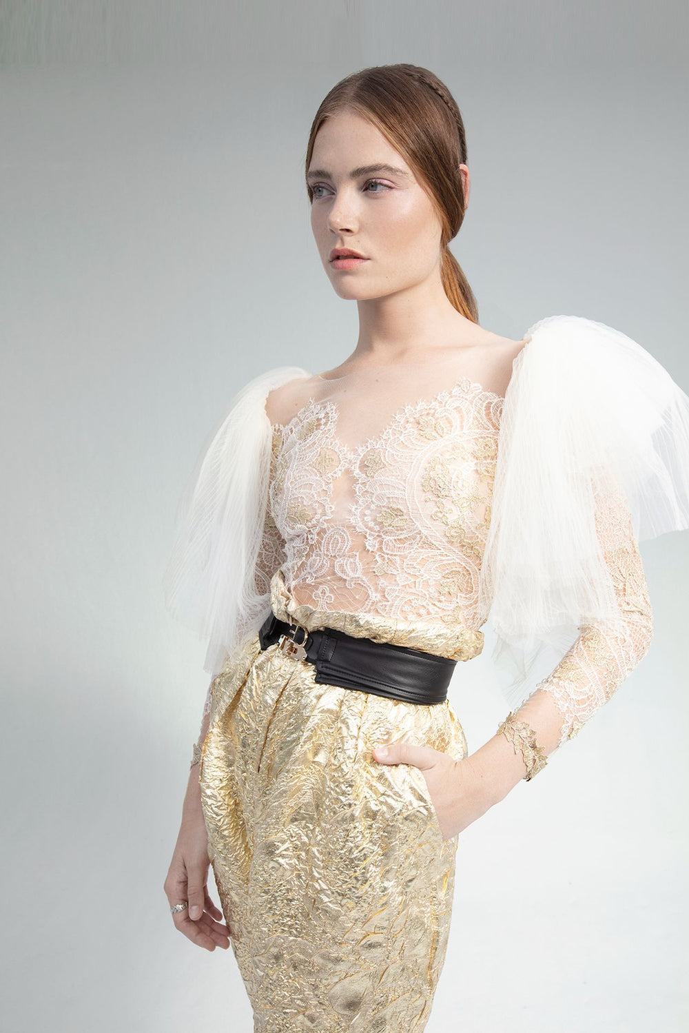 Silk Organza Blouse with Velvet Mermaid Skirt