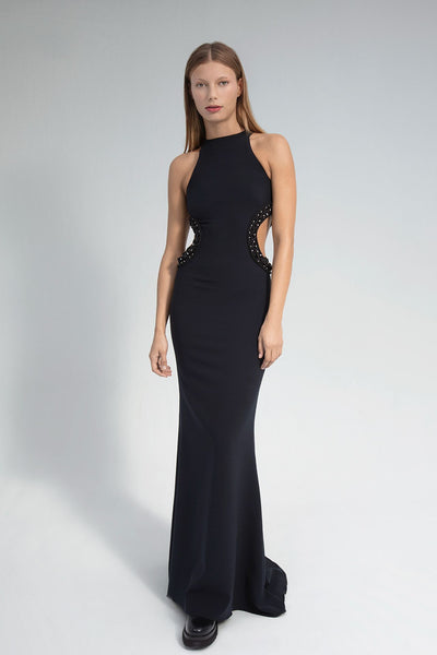 Crepe Sleeveless Mermaid Dress with Beading Details