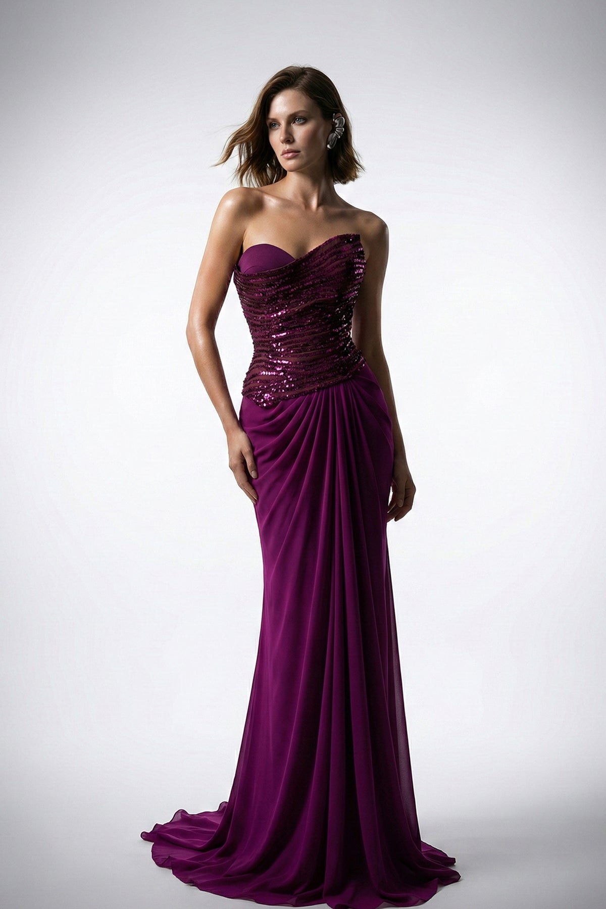 Sequinned Strapless Sweetheart Bodice with A-Line Dress