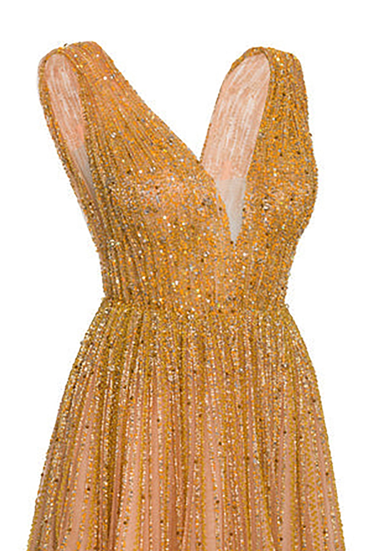 Beaded Gold Dress with V-neckline