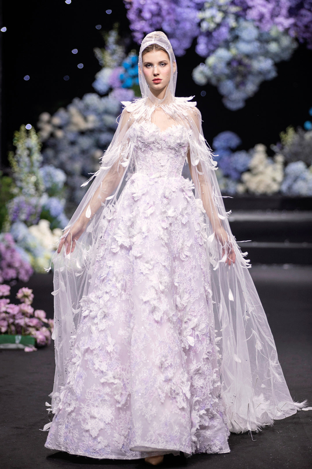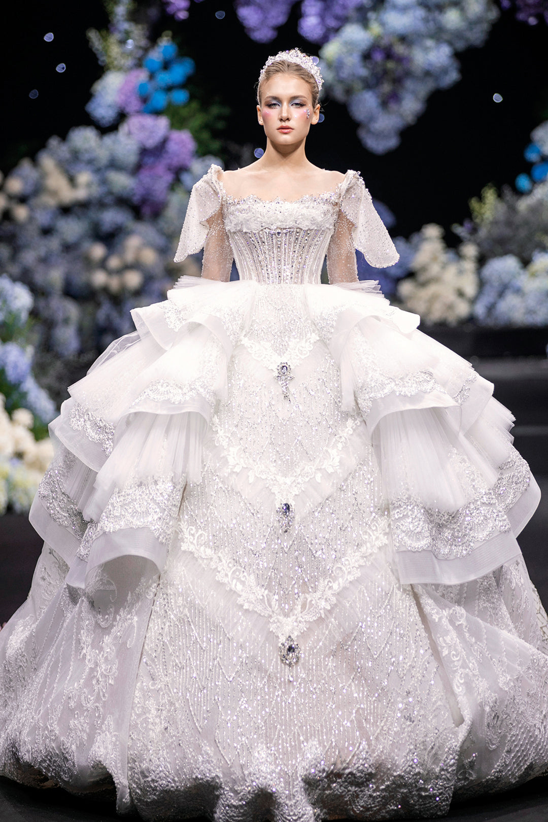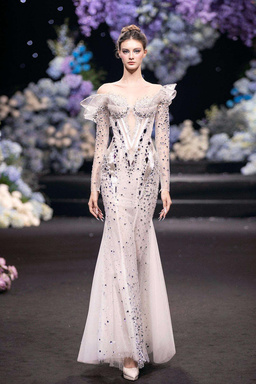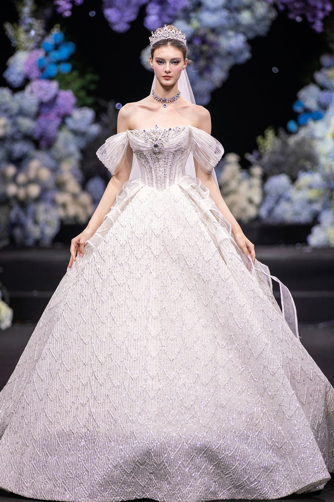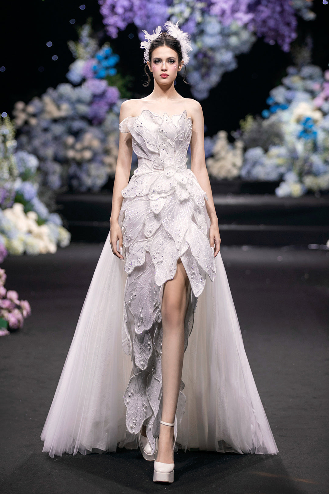 Off-The-Shoulder High-Low Dress with 3D Surface