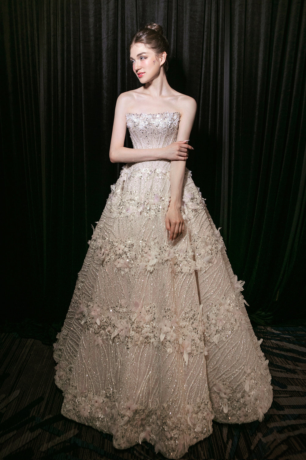 A-Line Strapless Bodice with Floral Appliqué Dress