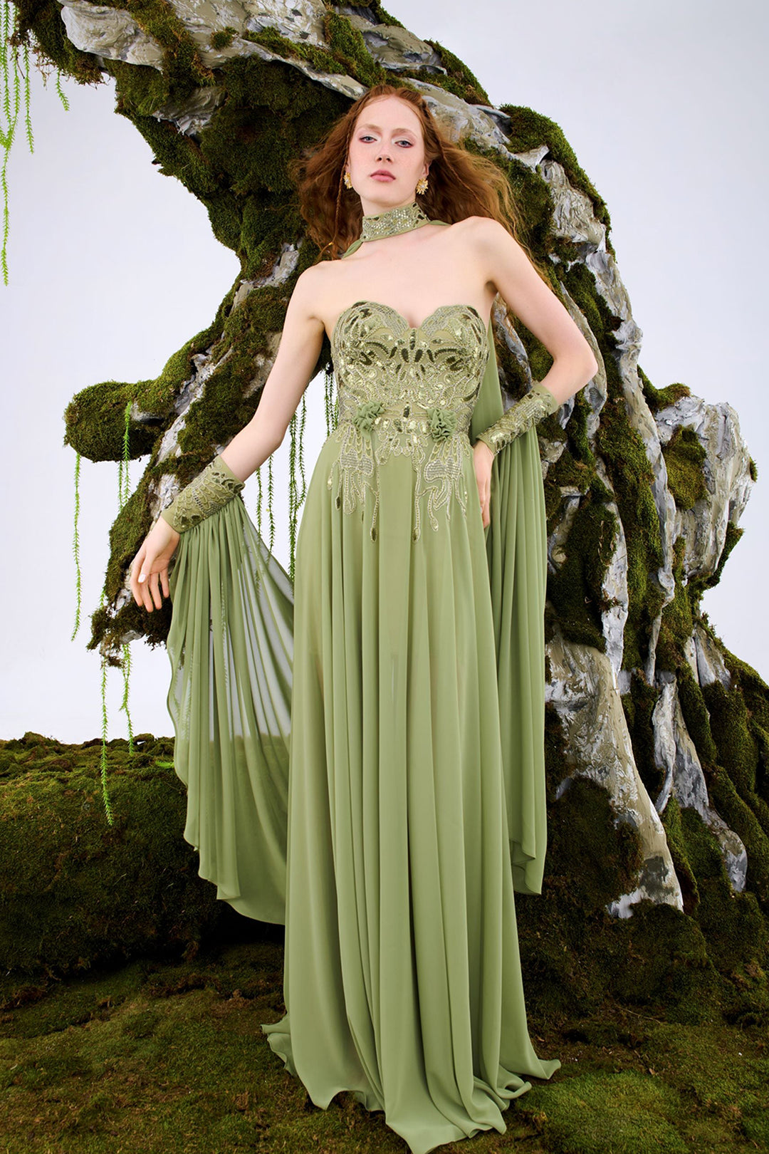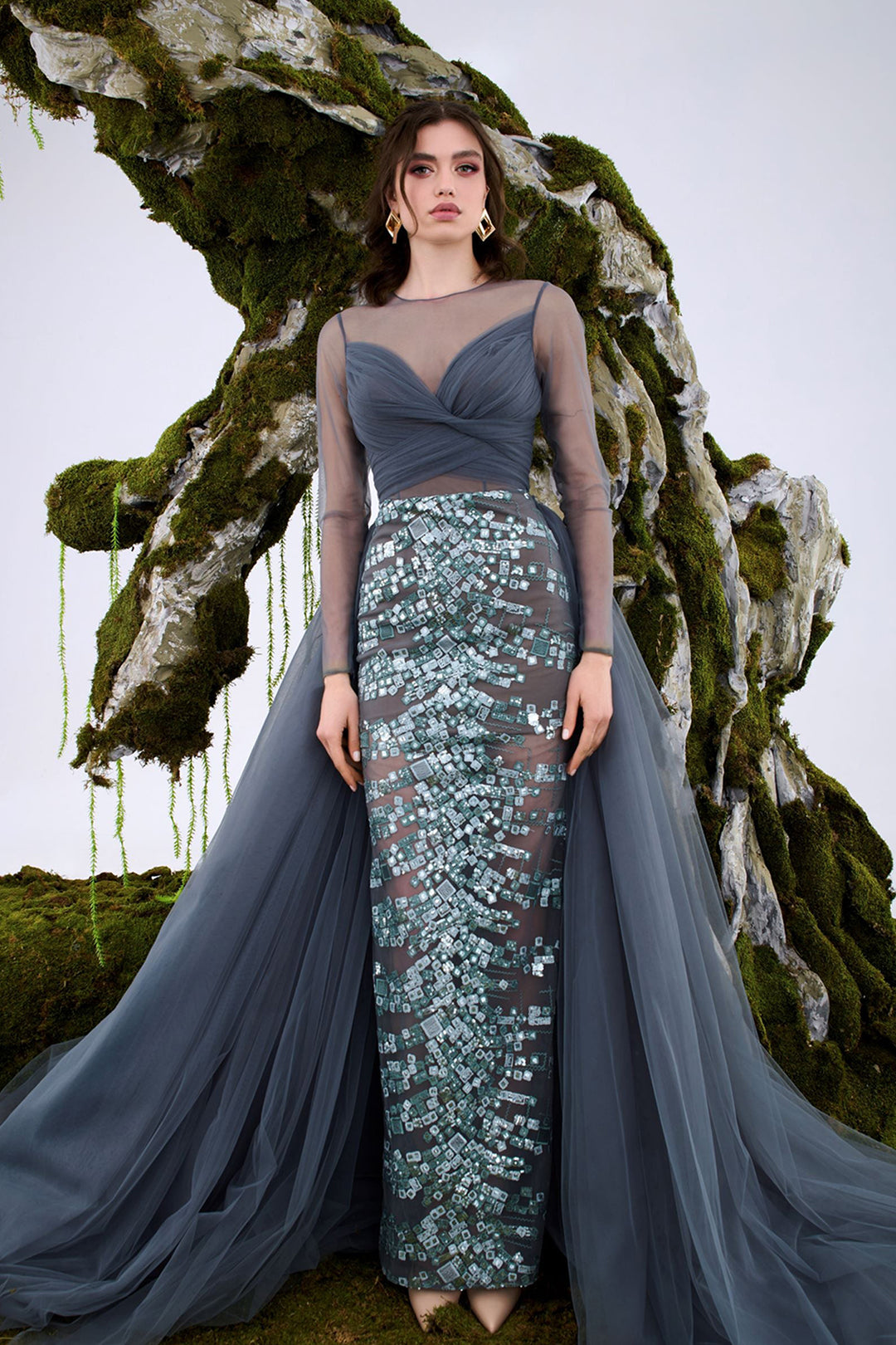 Velvet Mermaid Dress with Tail-Connected Sleeves