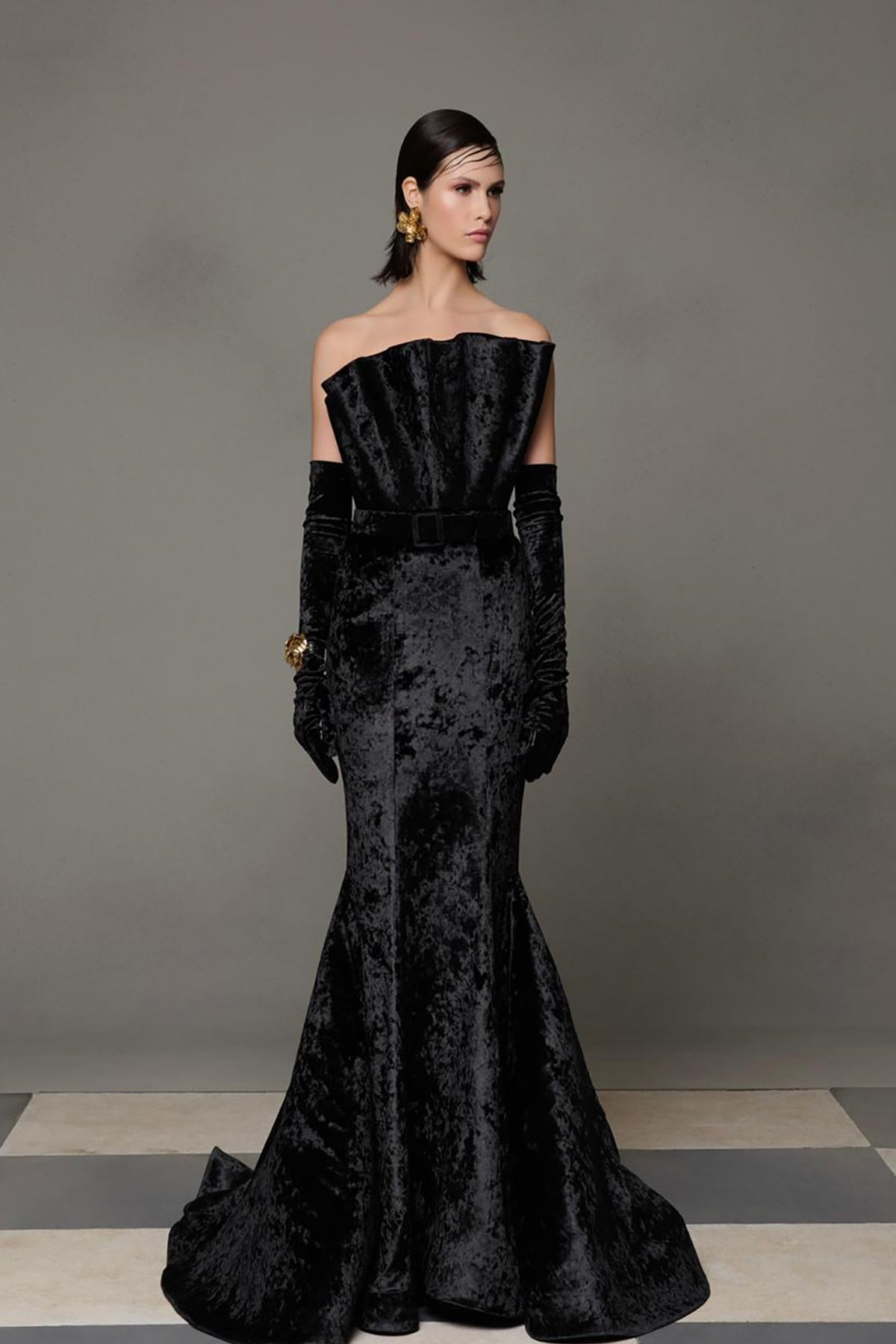 Velvet Off-The-Shoulder Mermaid Dress