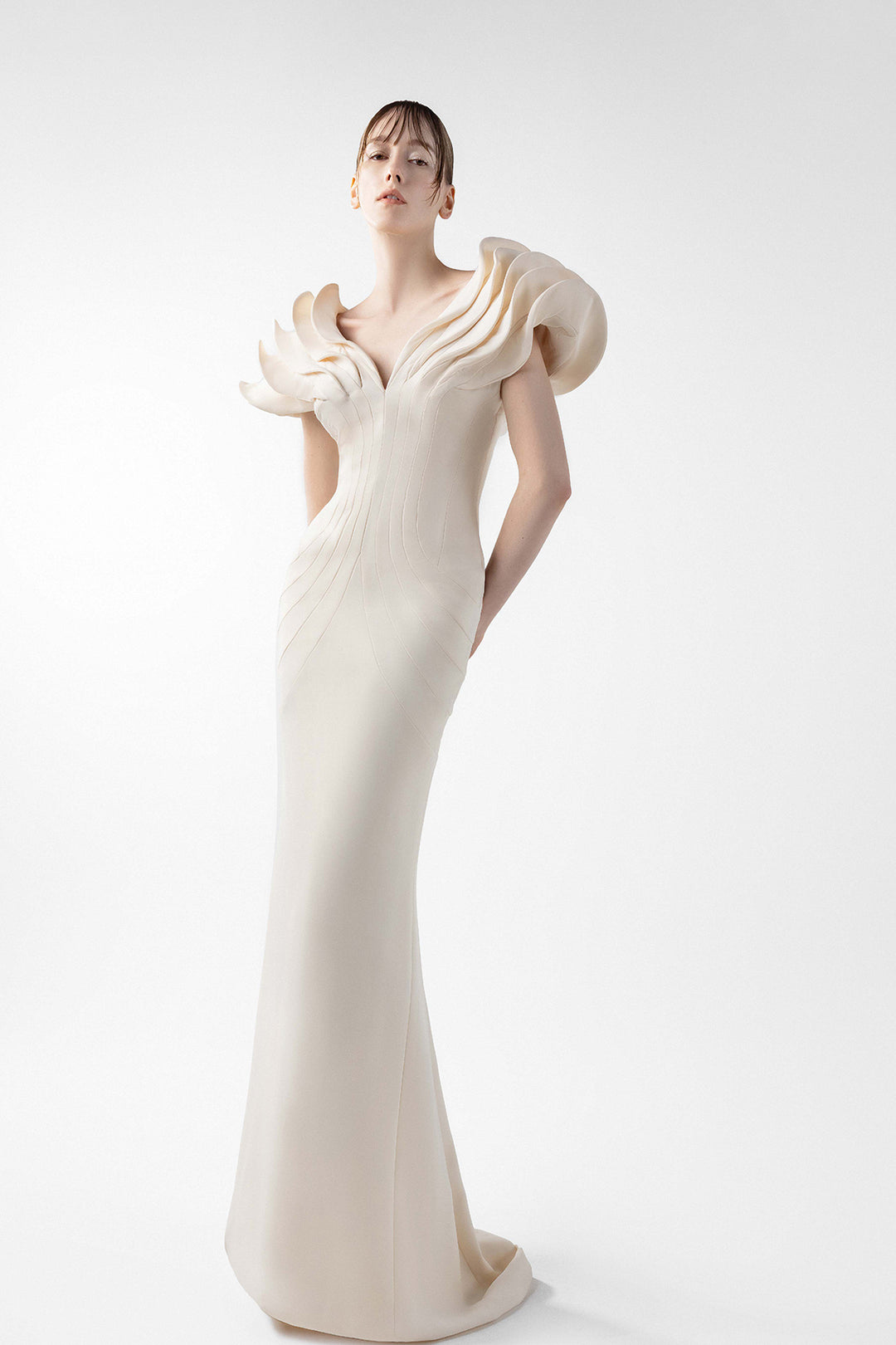 Strapless Dress with Rose Motif Embossing and Architectural Side Points